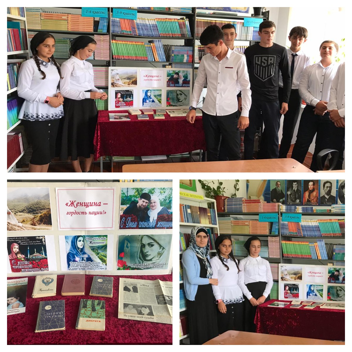 Библиотекарь Саиева Т.Т. рассказала ребятам, что этот праздник - это восстановленные города и села, парки и проспекты, цветущие сады и поля, что были восстановлены и построены новые объекты образования, культура, здравоохранения, спорта, что веками бок о бок живут и жили люди многочисленных национальностей, что развиваются культура, языки, традиции чеченского народа.