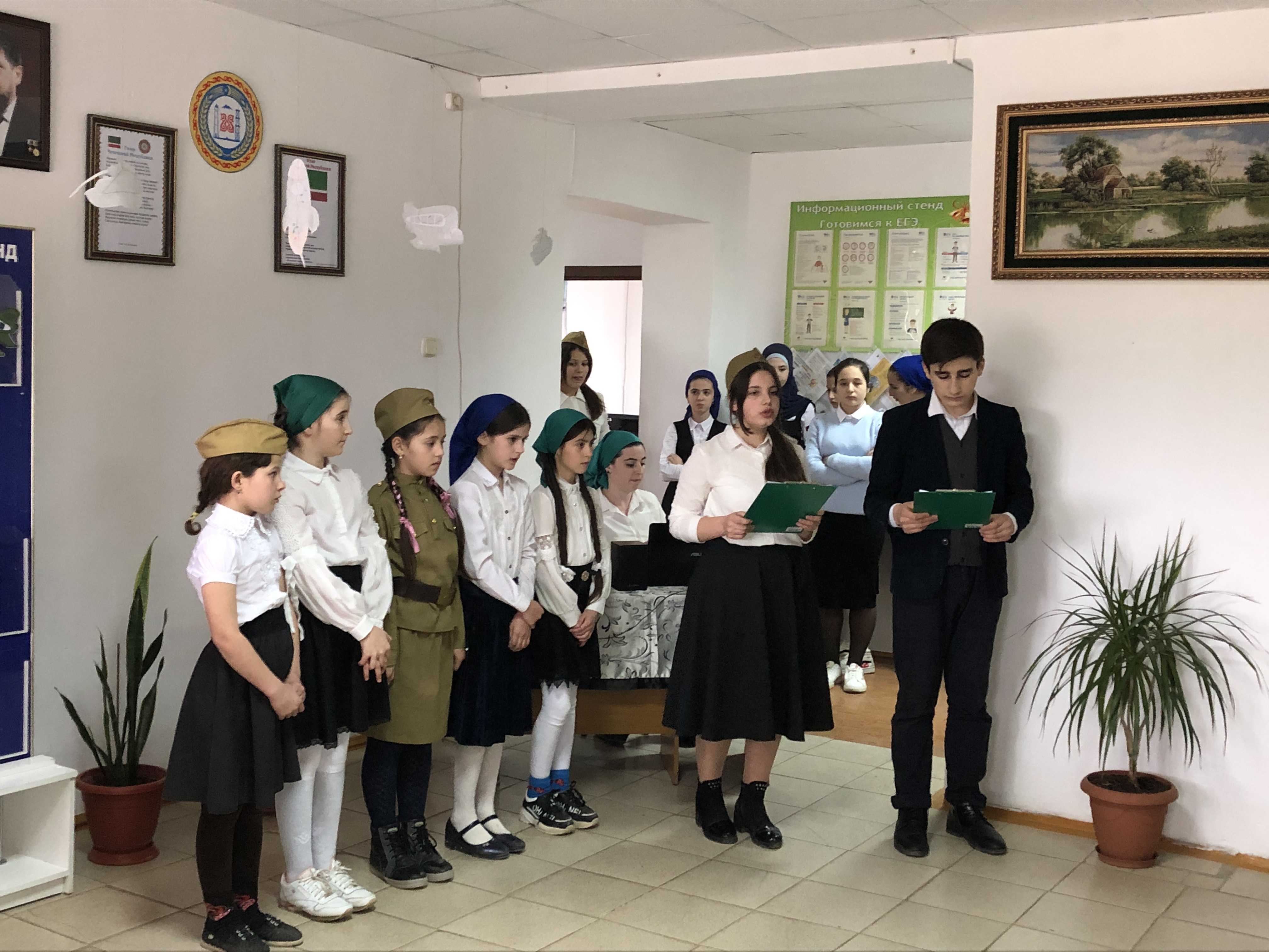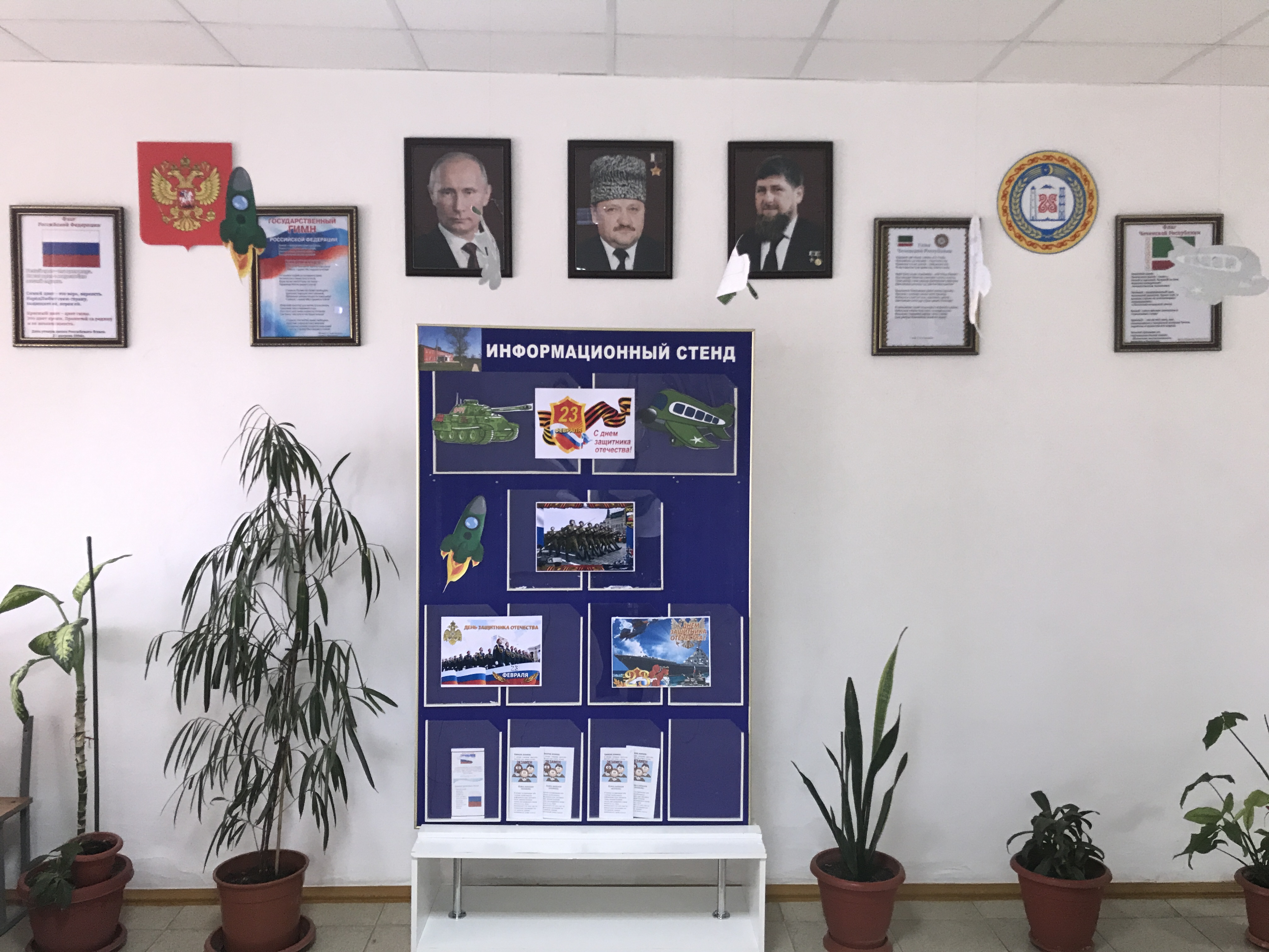 - учителем истории Шапиевой О.М. проведены уроки мужества в 5-11 классах, посвященные Дню защитника Отечества на примерах жизни и деятельности Первого Президента, Героя России А.А. Кадырова;