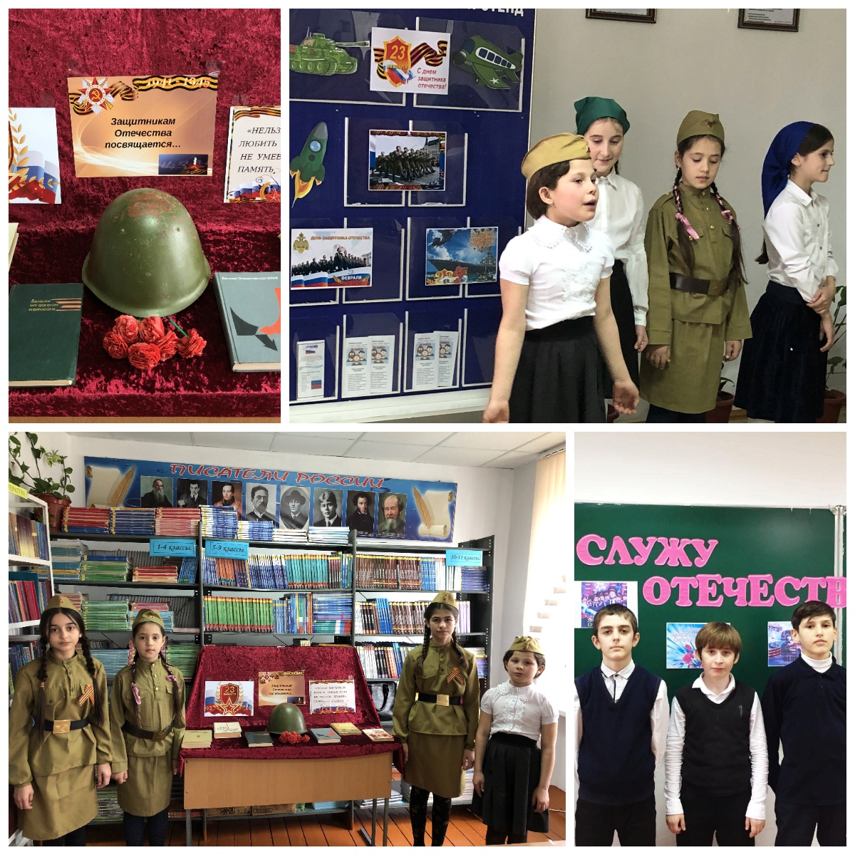 - библиотекарем школы Саиевой Т.Т. проведена книжная выставка «Защитникам Отчества посвящается»;
