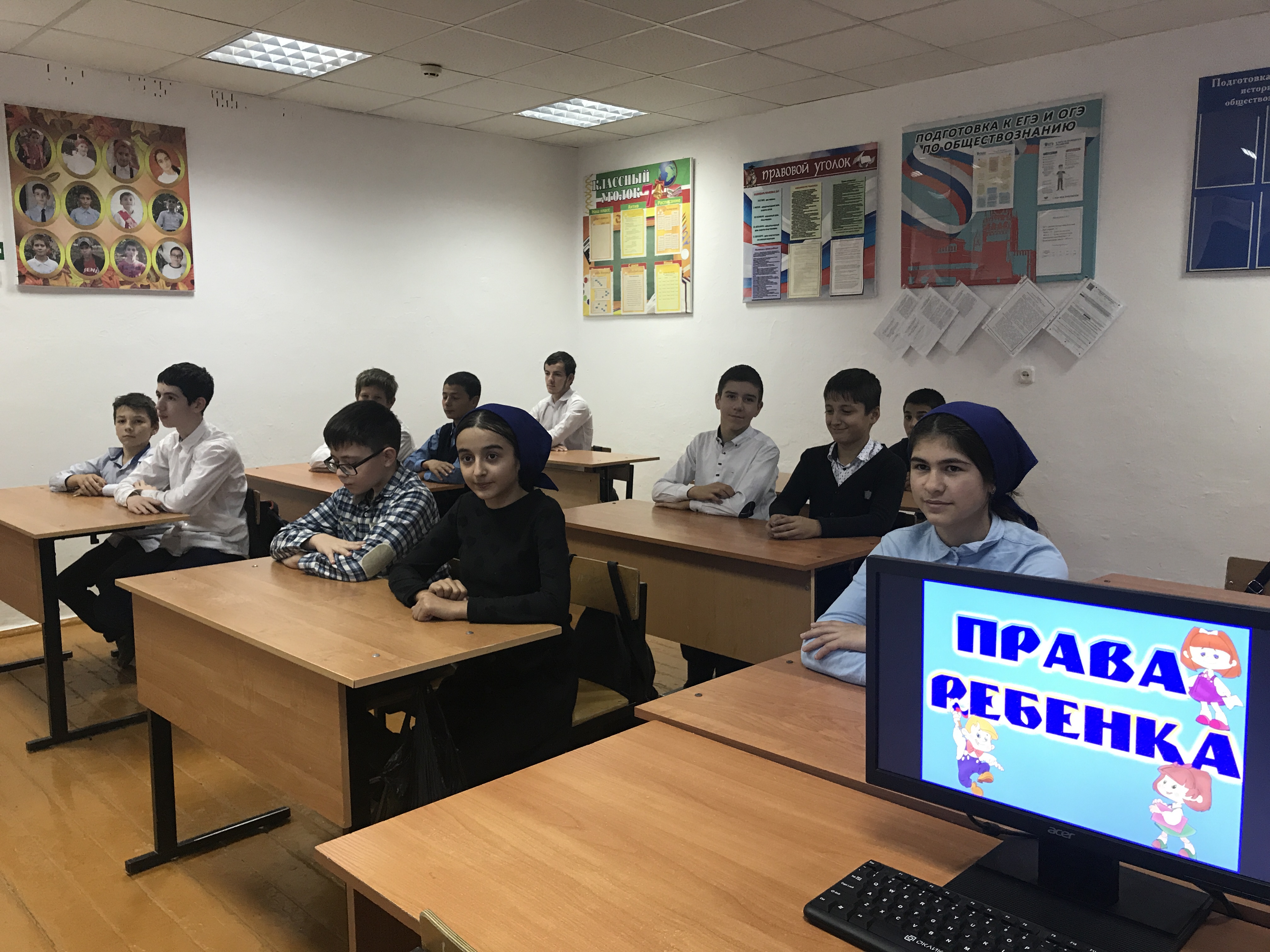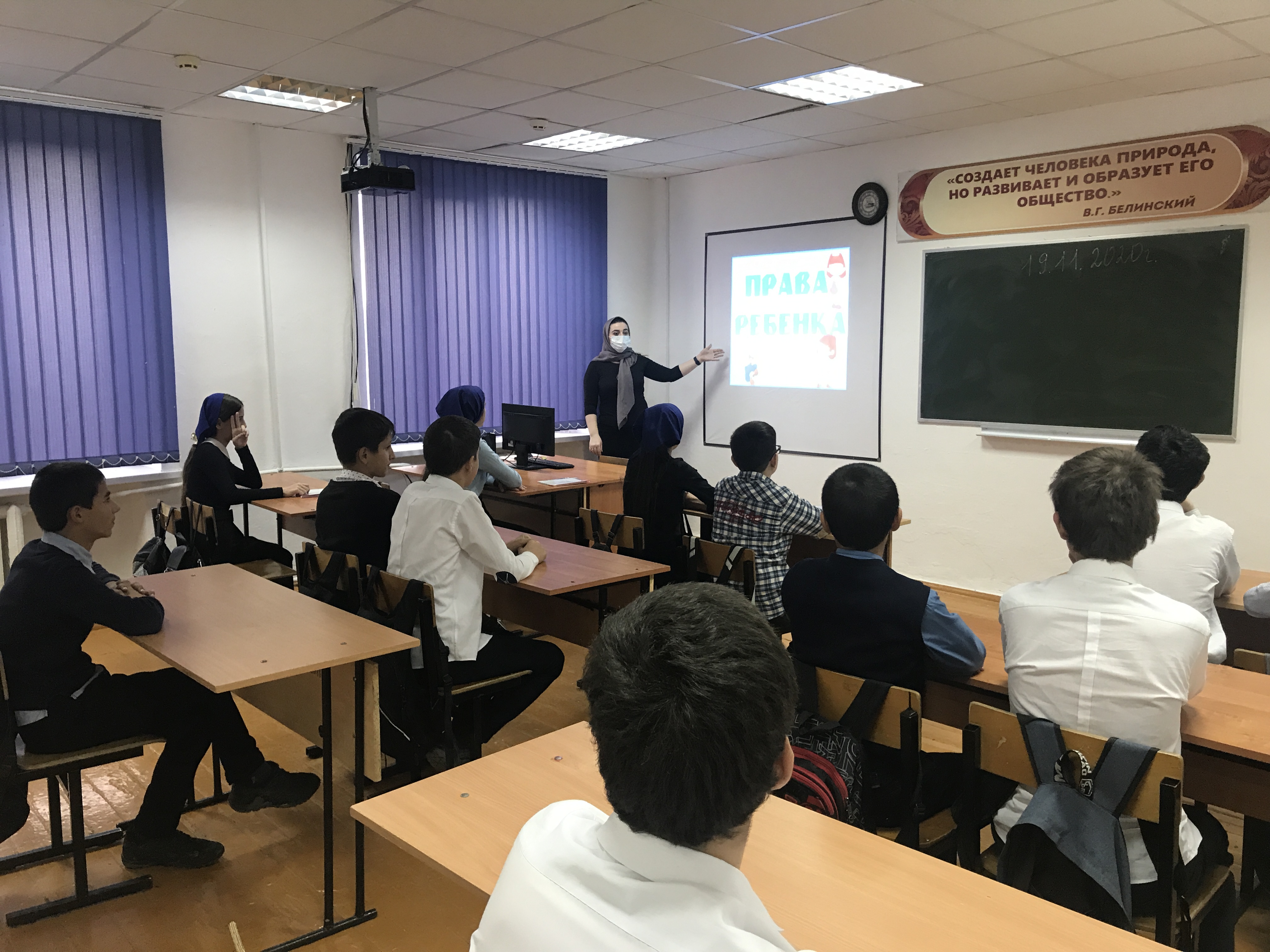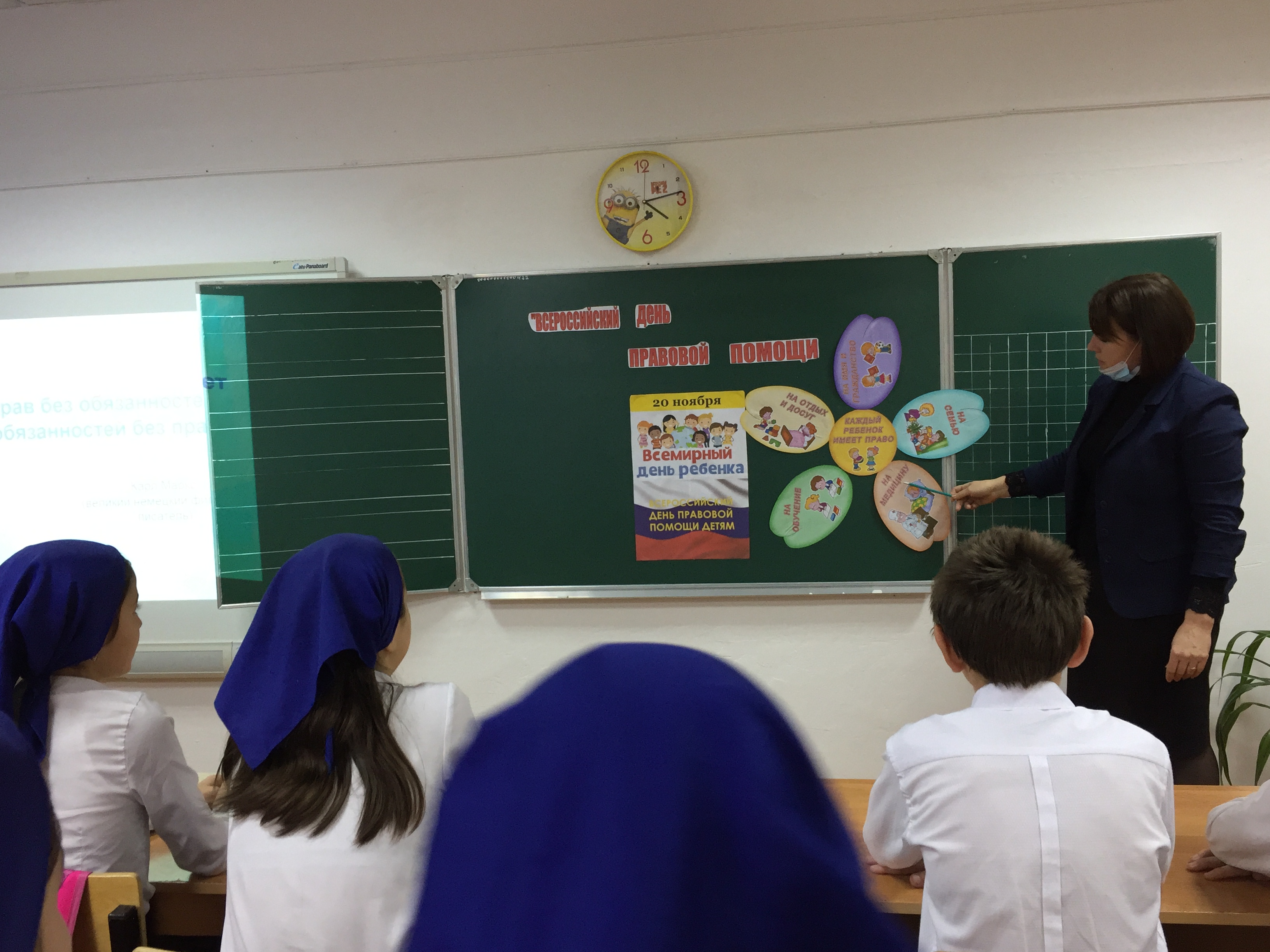 - с 16.11. по 20.11.2020г. классными руководителями 1-11 классов проведены классные часы: «Подросток и закон», «Права и обязанности детей», «Конвенция о правах ребенка», где были рассмотрены права детей, записанные в Конвенции о правах ребёнка и во Всеобщей декларации прав человека. Обсуждались жизненные ситуации, в которые попадают знакомые ребятам сказочные и литературные герои, чьи права оказались нарушенными с точки зрения МГП (международного гуманитарного права) и Декларации о защите прав детей.