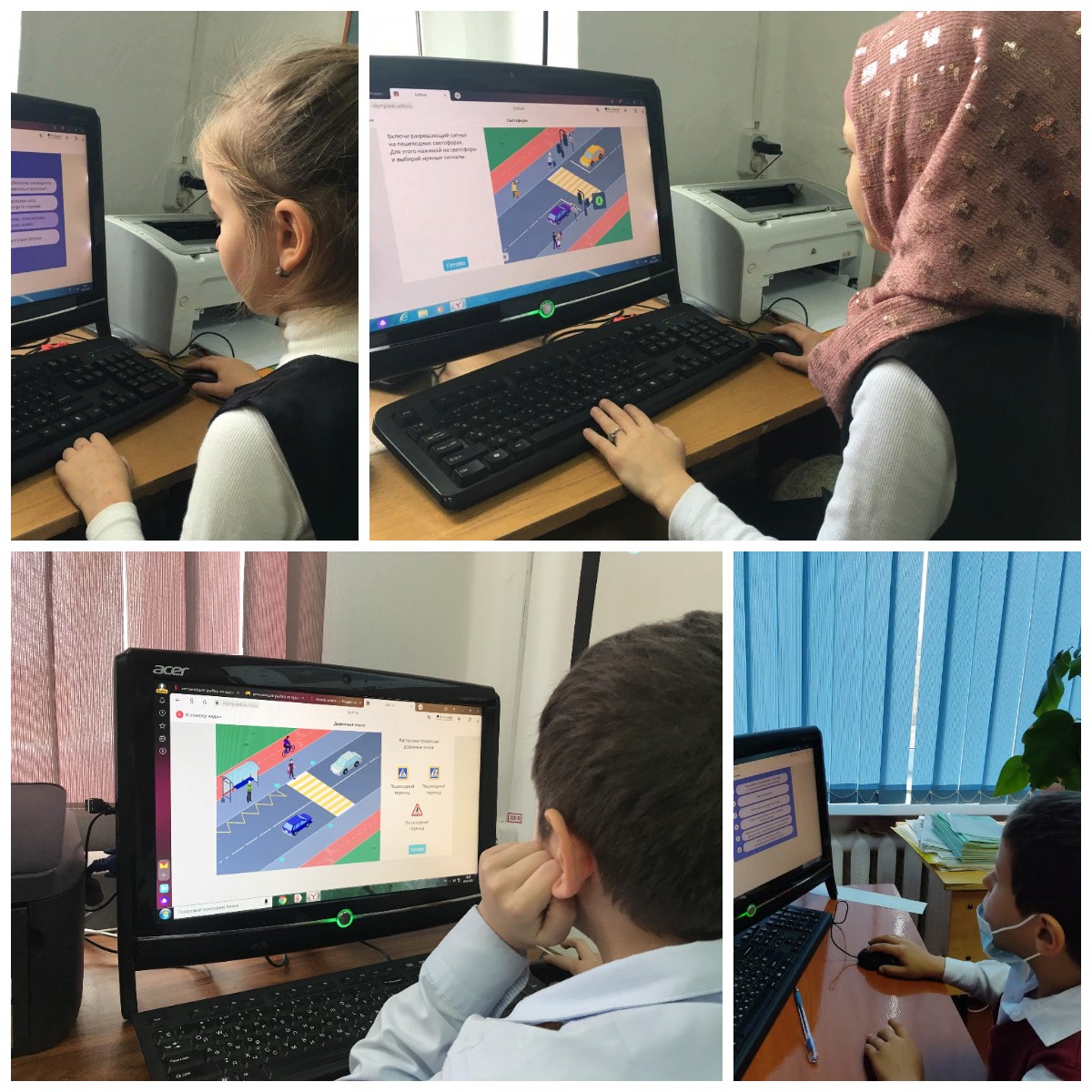 - под руководством классных руководителей 1-4 классов начиная с 30 ноября все учащиеся прошли онлайн-олимпиаду «Безопасные дороги». Всего было зарегистрировано детей: 1 класс -21 чел. (прошли -21 чел.), 2 класс-19 чел. (прошли 19 чел.), 3 класс – 16 чел. (прошли-16 чел.), 4 класс-16 чел. (прошли-16 чел.). Итого во Всероссийской онлайн-мероприятии приняло участие – 72 учащихся ;