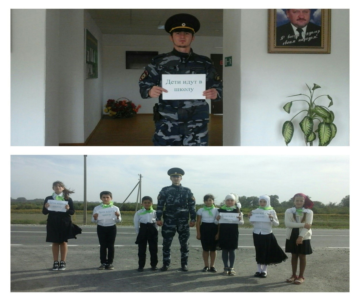 «Дети идут в школу» ... На первый взгляд кажется странным, что слова, обращенные к водителям, звучат в небольшом селе. Под таким призывом прошла сентябрьская акция, организованная школой совместно с инспектором ПДН мл.лейтенантом Абдурахмановым Х.А. Юные друзья полиции напомнили водителям о том, что необходимо пропускать на пешеходном переходе школьников, которые спешат в школу или возвращаются из неё.