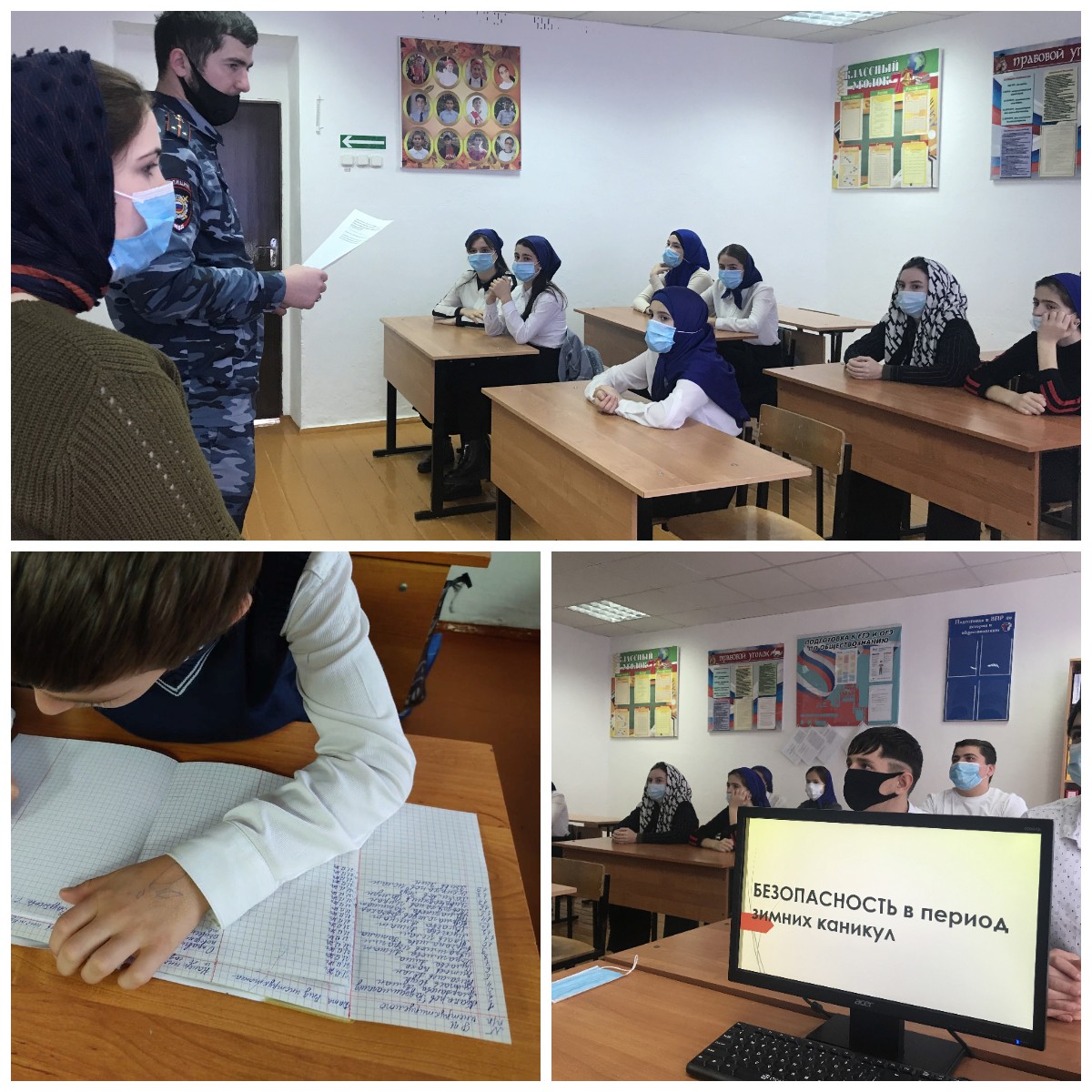 - Инспектором ПДН Абдурахмановым Х.А. совместно с социальным педагогом Шапиевой О.М. проведена беседа с распространением информационных листовок «Безопасность в период зимних каникул»;