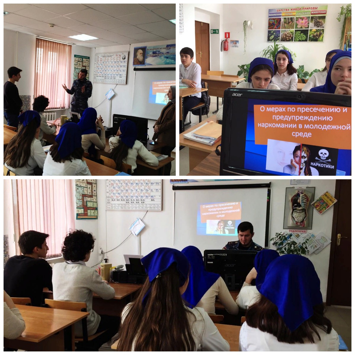 Инспектор ПДН рассказал школьникам о негативном влиянии наркомании на здоровье молодых людей и о последствиях употребления запрещенных средств. Также разъяснил подросткам, какие бывают формы принуждения, под давлением которых несовершеннолетние начинают пробовать, а затем употреблять наркотики. Главной целью данного профилактической беседы было воспитание ответственного и бережного отношения подростков к своему здоровью и здоровью окружающих.