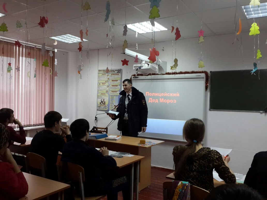 В рамках акции «Полицейский Дед Мороз - 2016» инспектор ПДН мл. лейтенант Абдурахманов Х.А. поздравили ребят с наступающим новым годом.