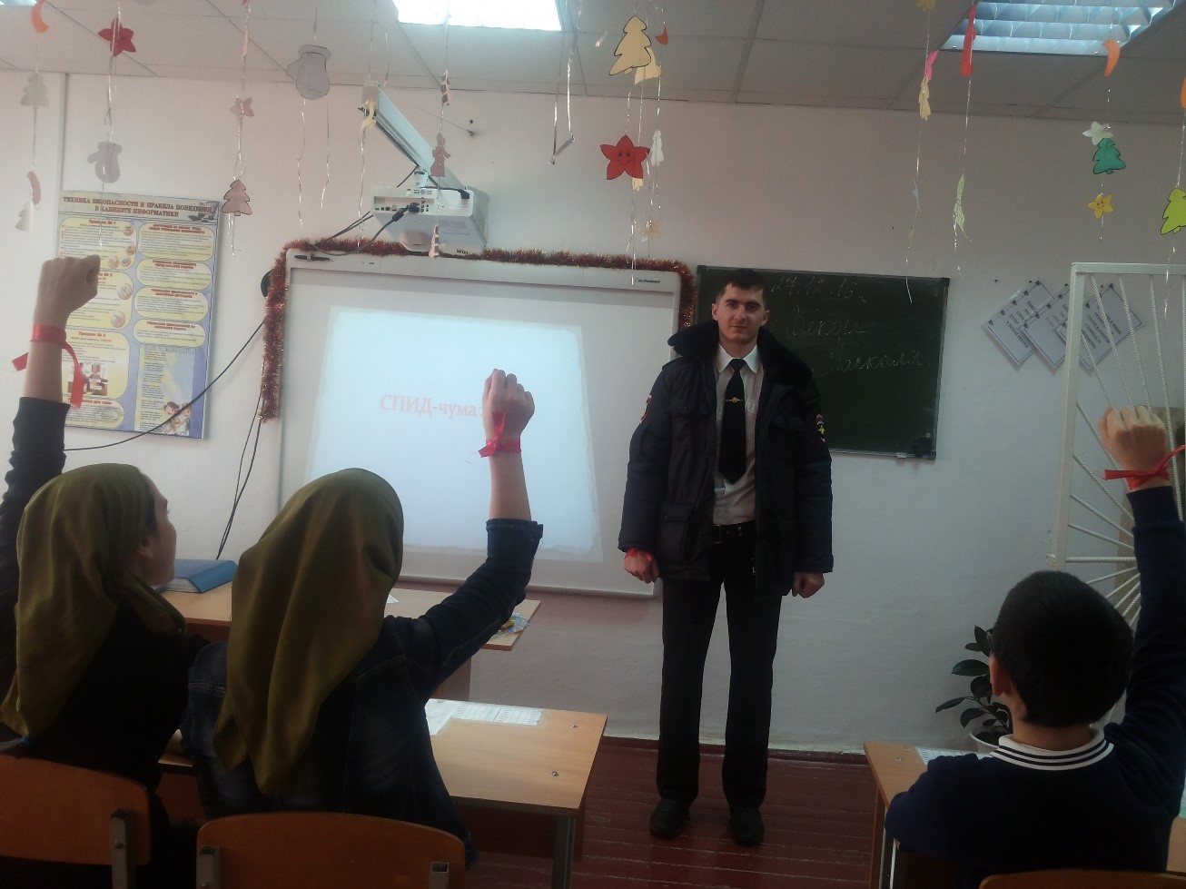 В рамках Всемирного Дня борьбы со СПИДом, который ежегодно отмечается 1 декабря была проведена беседа с обучающимися 8-11 класса совместно с Инспектором ПДН Абдурахмановым Х.А.