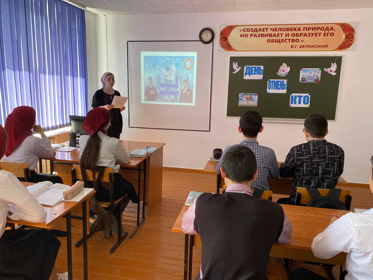 15 апреля классным руководителем 8 класса Мальсаговой М.Л. совместно с участниками движения ЮНАРМИЯ проведен классный час, посвященный Дню отмены КТО (день мира)