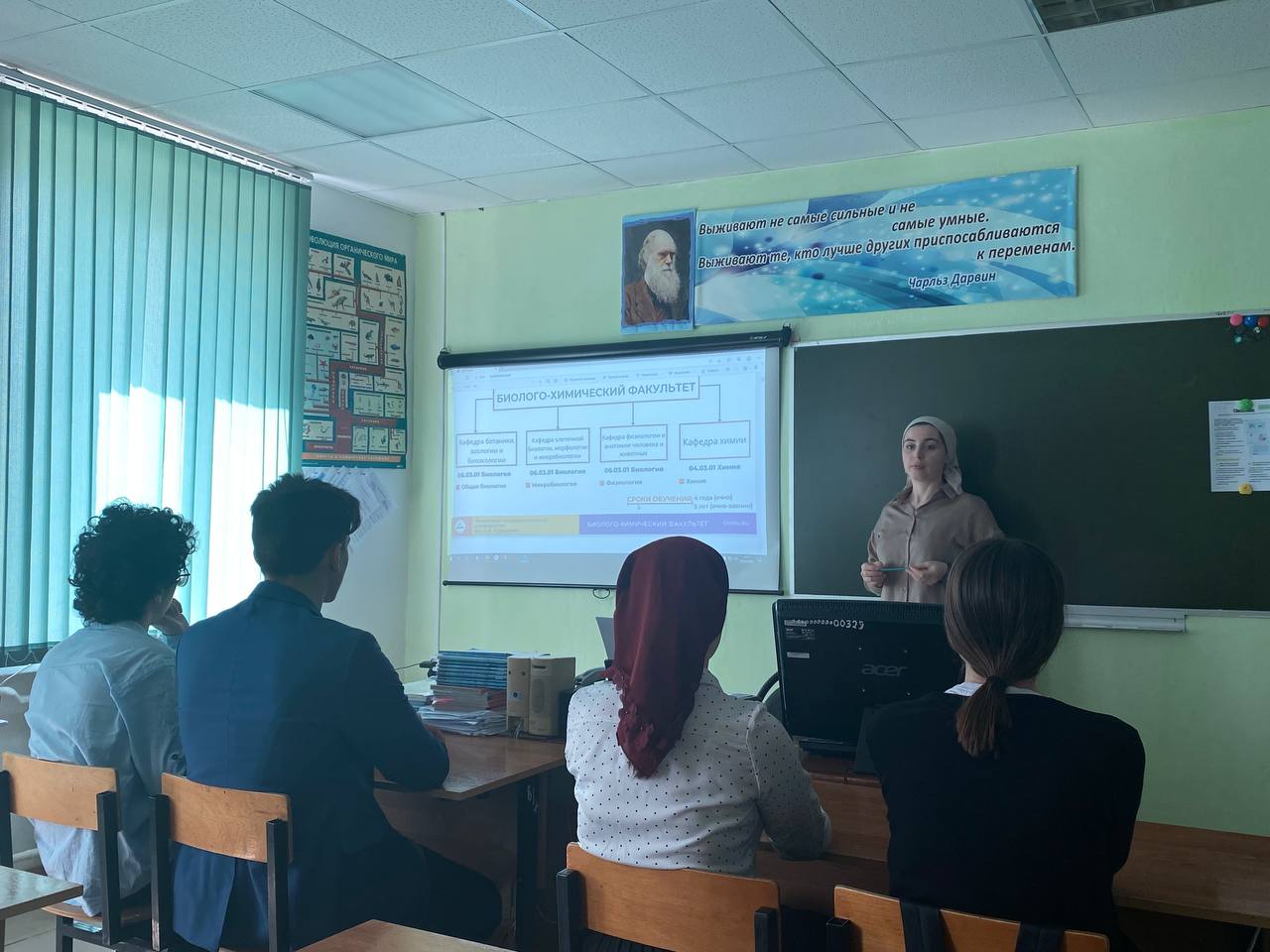 5 апреля ФГБО ВО «Чеченский государственный университет имени А.А. Кадырова» проведена профориентационная работа по ознакомлению выпускников школы с факультетом биологии и химии. В рамках проводимой работы проведена олимпиада по биологии с учащимся 11 класса Багаевым А.