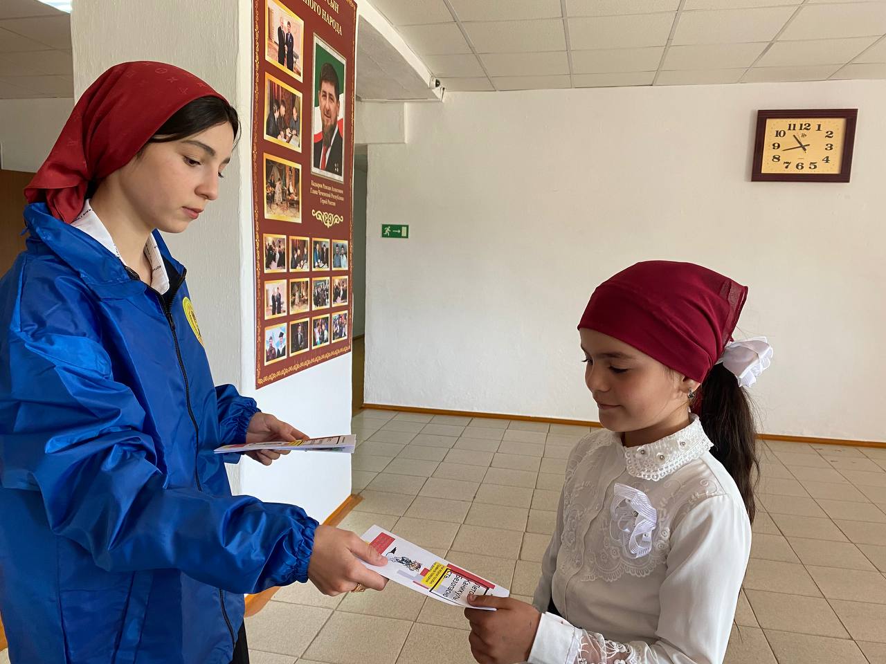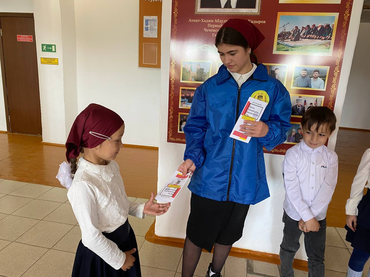 В рамках профилактических мероприятий по обеспечению безопасности в летний период ЕДЮО «Юные Кадыровцы» МБОУ «Бороздиновская СОШ» провели акцию среди учащихся начальных классов по распространению информационных буклетов : « Лето. Каникулы. Безопасность.»