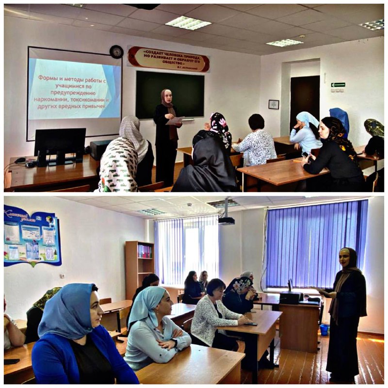 19.05.2022Сегодня проведён педсовет, на котором выступила социальный педагог Шапиева О.М. «Формы и методы работы с учащимися по предупреждению наркомании, токсикомании и других вредных привычек».