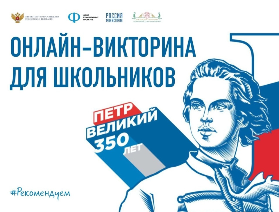 27.05.2022Исторические парки «Россия – Моя история» запускают онлайн-викторину для школьников, посвящённую празднованию 350-летия со дня рождения Петра I. Всего – 20 вопросов, но прежде чем ответить на них, ребята должны изучить исторические документы и карту Российской империи, ознакомиться с видеоматериалами, рассказывающими об эпохе правления первого российского императора. Пройти викторину можно на сайте Участники получат ценные призы. Итоги подведут 30 сентября.