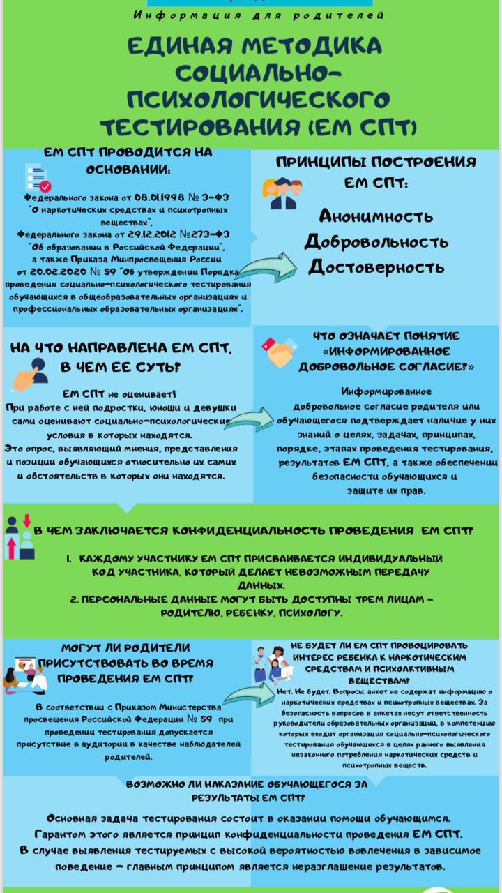 17.09.2022📊✒Социально - психологическое тестирование-2022-2023 - (далее СПТ-2022) Уважаемые родители (законные представители)! В рамках информационной кампании 🗣☝🏻по СПТ-2022 хотим познакомить вас или еще раз обратить ваше внимание на основные моменты касательно СПТ-2022. 👇🏻👇🏻👇🏻👇🏻👇🏻👇🏻👇🏻 ❓На что направлена методика социально-психологического тестирования, в чем ее суть?