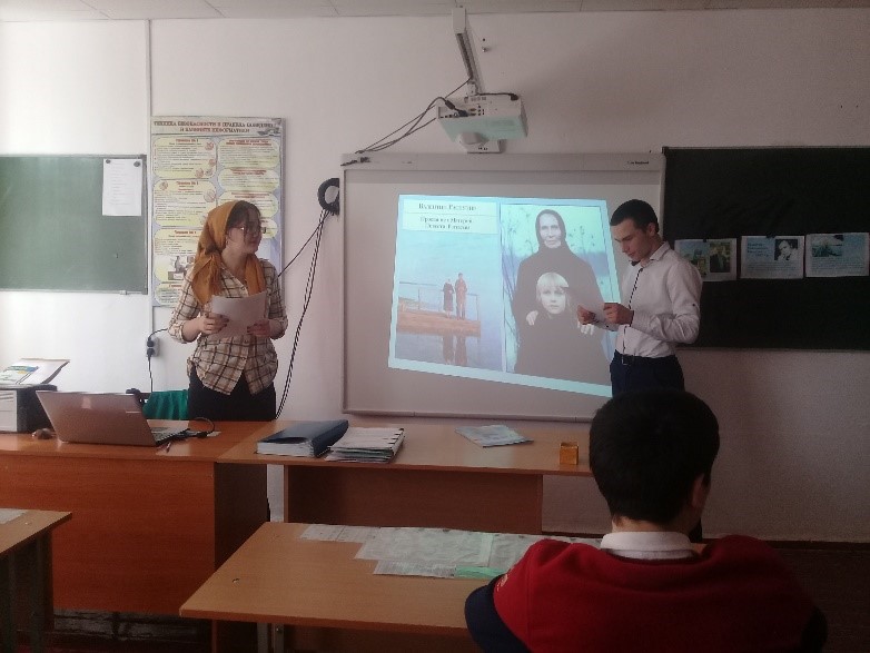 В ходе литературного часа обучающиеся просмотрели отрывки из фильма по рассказу В. Распутина «Уроки французского». Во время беседы учащиеся активно задавали вопросы, обсуждали поступки главного героя, сравнивали послевоенную жизнь и отношения людей тех лет с нашим временем.