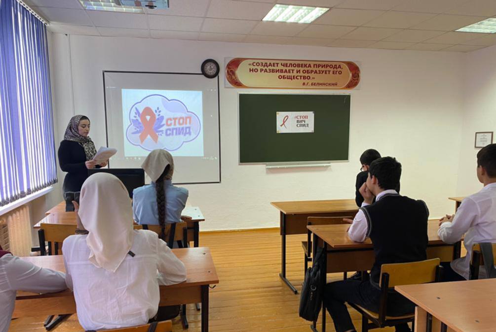 В рамках Международного дня борьбы со СПИДом классным руководителем 9 класса Мальсаговой М.Л. проведен классный час «СПИД - чума XXI века». Она рассказала обучающимся о том, что такое ВИЧ-инфекция, чем отличается от СПИДа, о путях заражения ВИЧ и возможности инфицирования, о мерах профилактики.