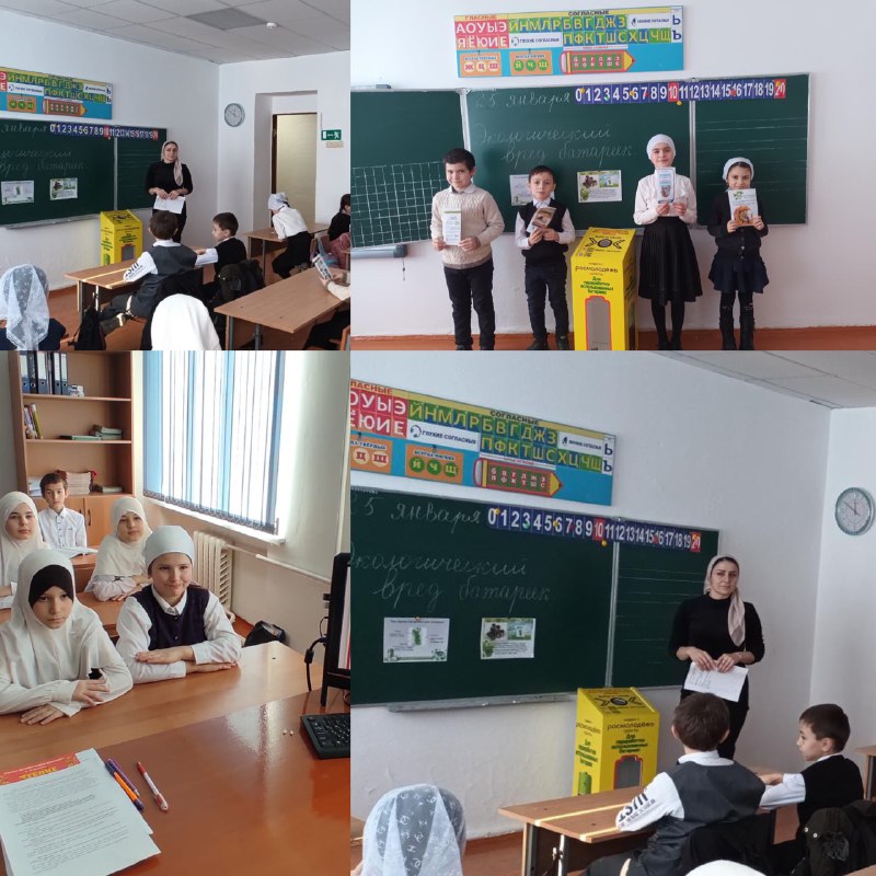 В рамках проекта «Батарейки, сдавайтесь» классные руководители 2 и 4 классов провели классные часы на тему: « Вред батарейки».Зуева С.С.Заурбекова С.Ф.