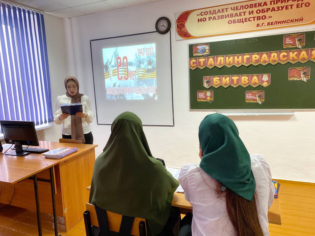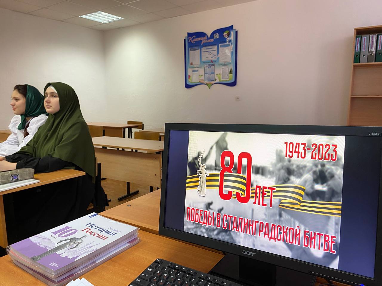 02.02.2023Сегодня учителем истории Шапиевой О.М. проведен урок мужества с обучающимися 11 класса, приуроченный к 80-летию со дня кровопролитной Сталинградской битвы в годы Великой Отечественной войны.