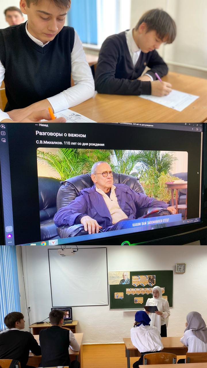 13.03.202313 марта прошло внеурочное занятие «Разговоры о важном» на тему «110 лет со дня рождения советского писателя и поэта, автора слов гимна СССР и гимна России С.В. Михалкова. В начале ребята посмотрели сюжет о С. Михалкове. Вспомнили о его творчестве.