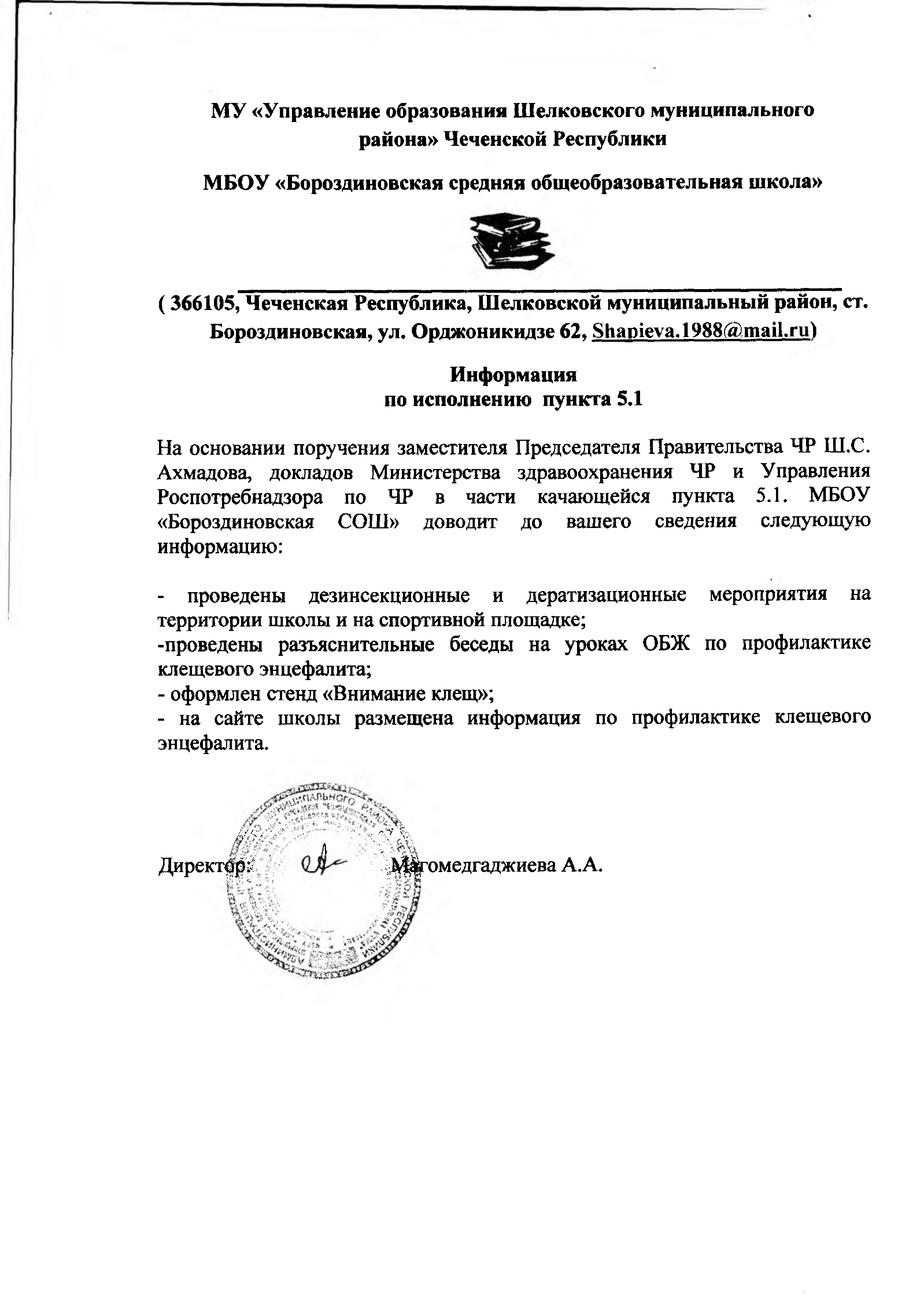 На основании поручения заместителя Председателя Правительства ЧР Ш.С.Ахмадова, докладов Министерства здравоохранения ЧР и УправленияРоспотребнадзора по ЧР в части качающейся пункта 5.1.