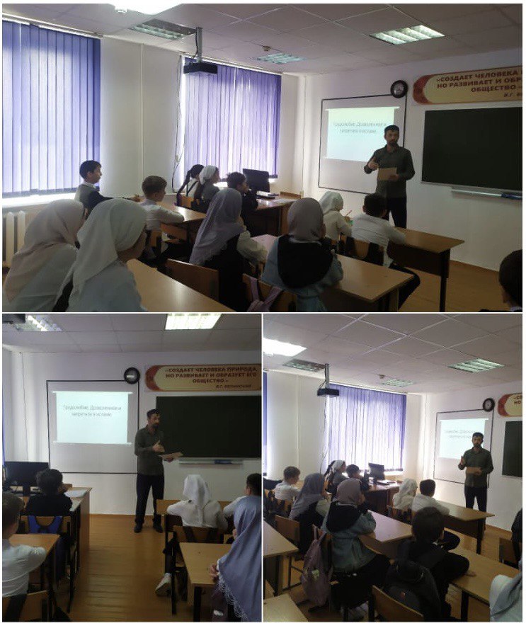 25.04.2023В рамках реализации Единой концепции духовно-нравственного воспитания и развития подрастающего поколения ЧР педагог по ДНВ Алиев Г.С. провёл беседу на тему: "Трудолюбие. Дозволенное и запретное в Исламе"