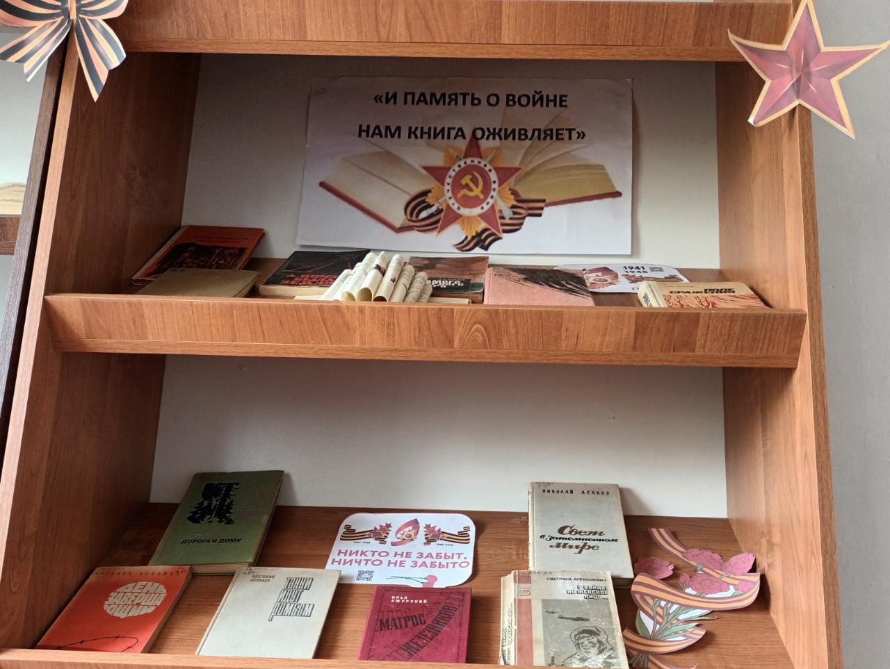 Библиотекарем школы Зуевой С.С. оформлена книжная выставка «И память о войне нам книга оживляет», посвященная празднованию Дня Победы.