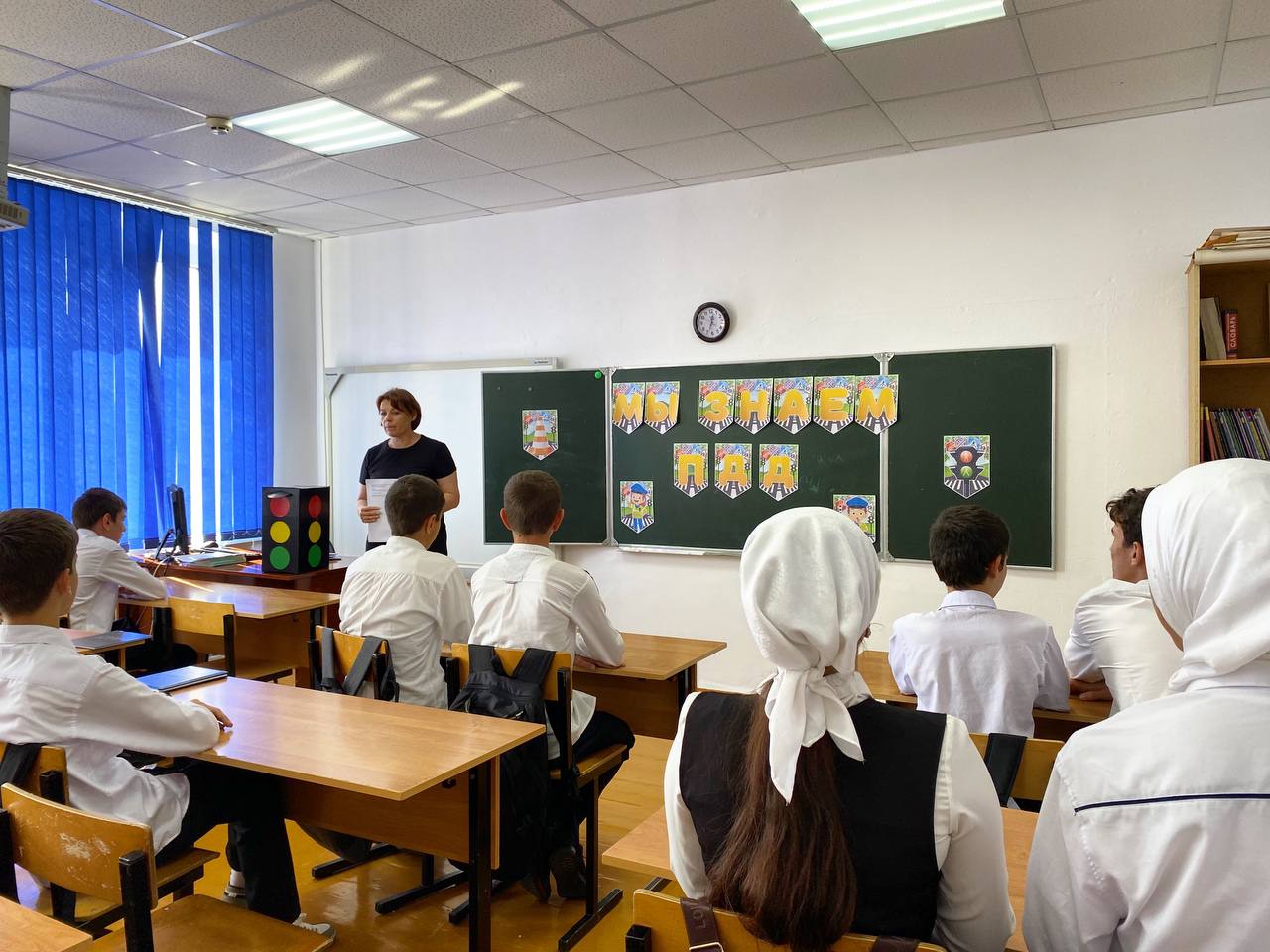 На классных часах обучающиеся повторили и закрепили знания о том, как правильно переходить улицы и дороги. Также познакомились с основными положениями Закона Российской Федерации «О безопасности дорожного движения»: узнали об уголовной, административной, гражданской и дисциплинарной ответственности за нарушения в сфере организации дорожного движения..