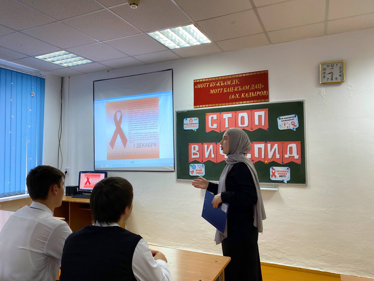 28.11.2023В рамках Международного дня борьбы со СПИДом в 11 классе прошел классный час на тему «Стоп ВИЧ/СПИД. Шапиева Оксана Муртазалиевна обсудила с учащимися актуальные проблемы, связанные со здоровьем человека и необходимостью выбора, основанного на знаниях о ВИЧ и СПИДе.