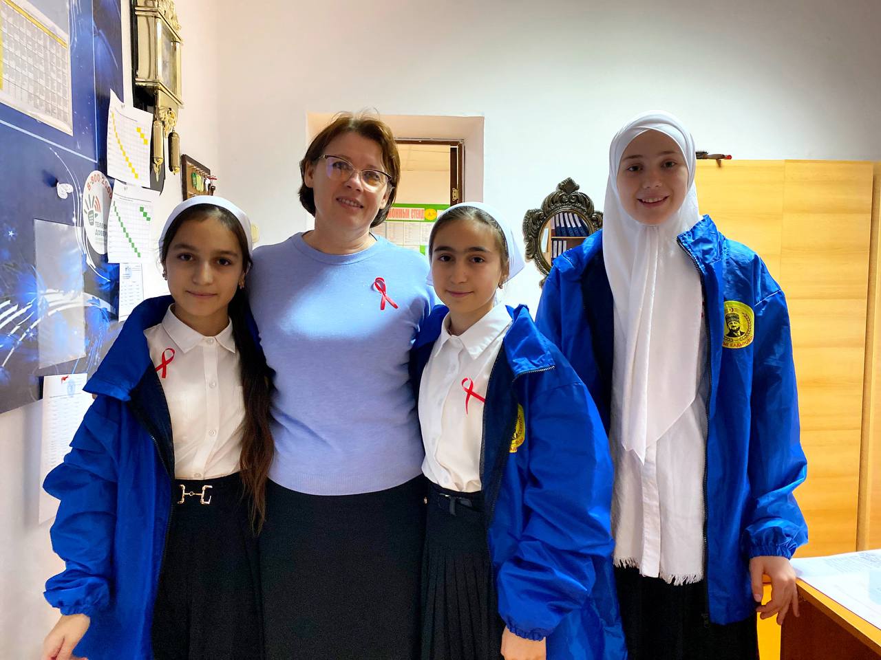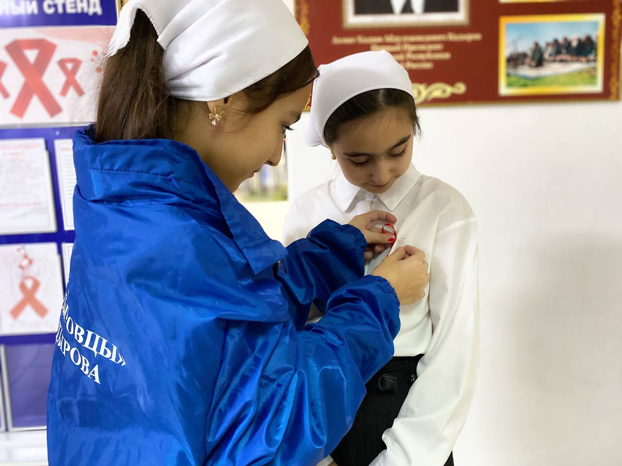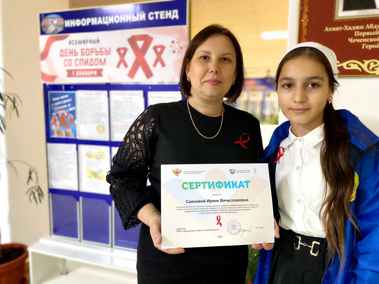 Символом памяти о людях, жизнь которых унес СПИД, является красная ленточка - петелька из небольшого кусочка красной ткани. В апреле 1991 года, чтобы привлечь внимание общественности к проблеме СПИДа, художник Франк Мур создает эмблему - красную ленточку. Красная ленточка существует как символ надежды, объединяющий людей, заявивших о необходимости осмысления проблемы СПИДа и солидарности с теми, кого это коснулось. Помнить об ушедших, почтить их память и задуматься о собственной жизни и здоровье, а также о том, что эпидемия СПИД может затронуть каждого и надо всегда оставаться человечным – главный лейтмотив этого дня. Так, активисты ЕДЮО «Юные Кадыровцы» и волонтерского движения приняли участие в акции «Красная ленточка», распространив красные ленточки, свернутые петелькой. В акции приняли участие педагоги и учащиеся школы, которые прикололи ленты на груди и носили их весь день. Ленточка цвета крови, свёрнутая петелькой, является Международным символом борьбы со СПИДом – символом нашего сострадания, поддержки и надежды на будущее без СПИДа.