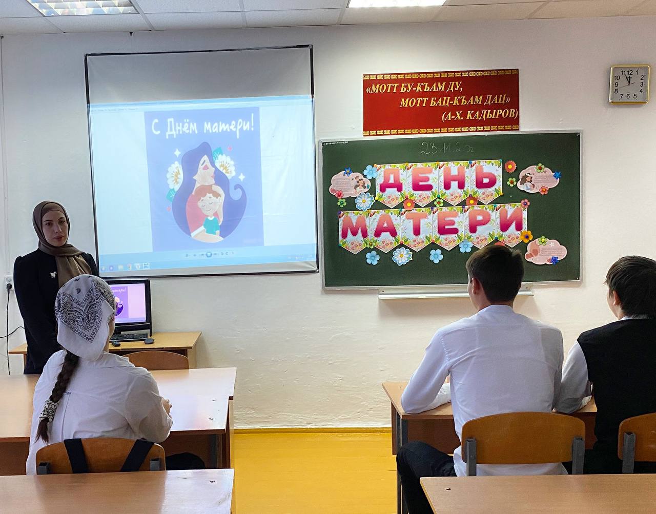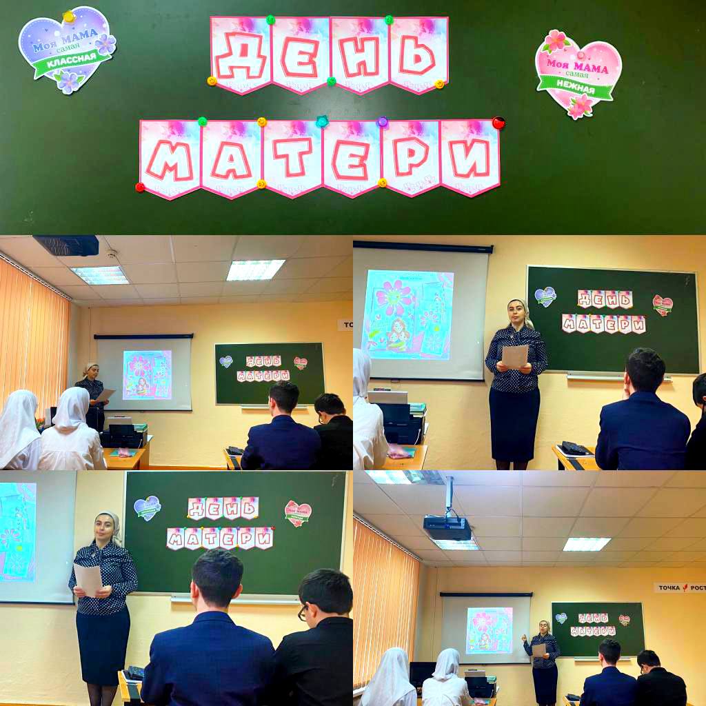 Невозможно поспорить с тем, что это праздник вечности. В связи с этим в нашей школе прошли классные часы, приуроченные ко Дню Матери. День Матери — это тёплый, сердечный праздник. И сколько бы хороших, добрых слов не было сказано мамам, лишними они никогда не будут.