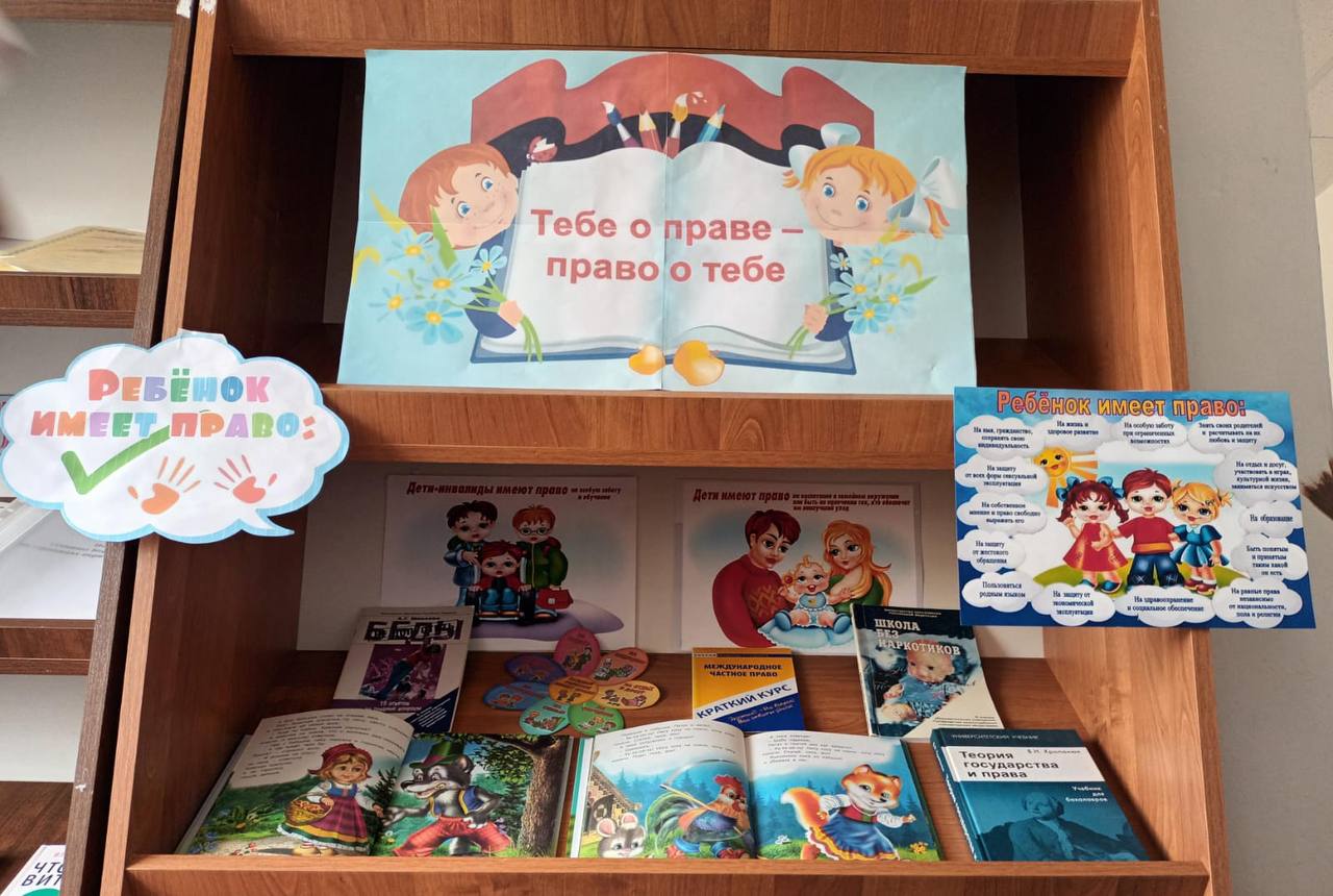 21.11.2023библиотекарем Зуевой С.С. оформлена книжная выставка «Тебе о праве – права о тебе». На книжной выставке была размещена подборка статей, книг, брошюр, содержащая информацию о правах ребенка.