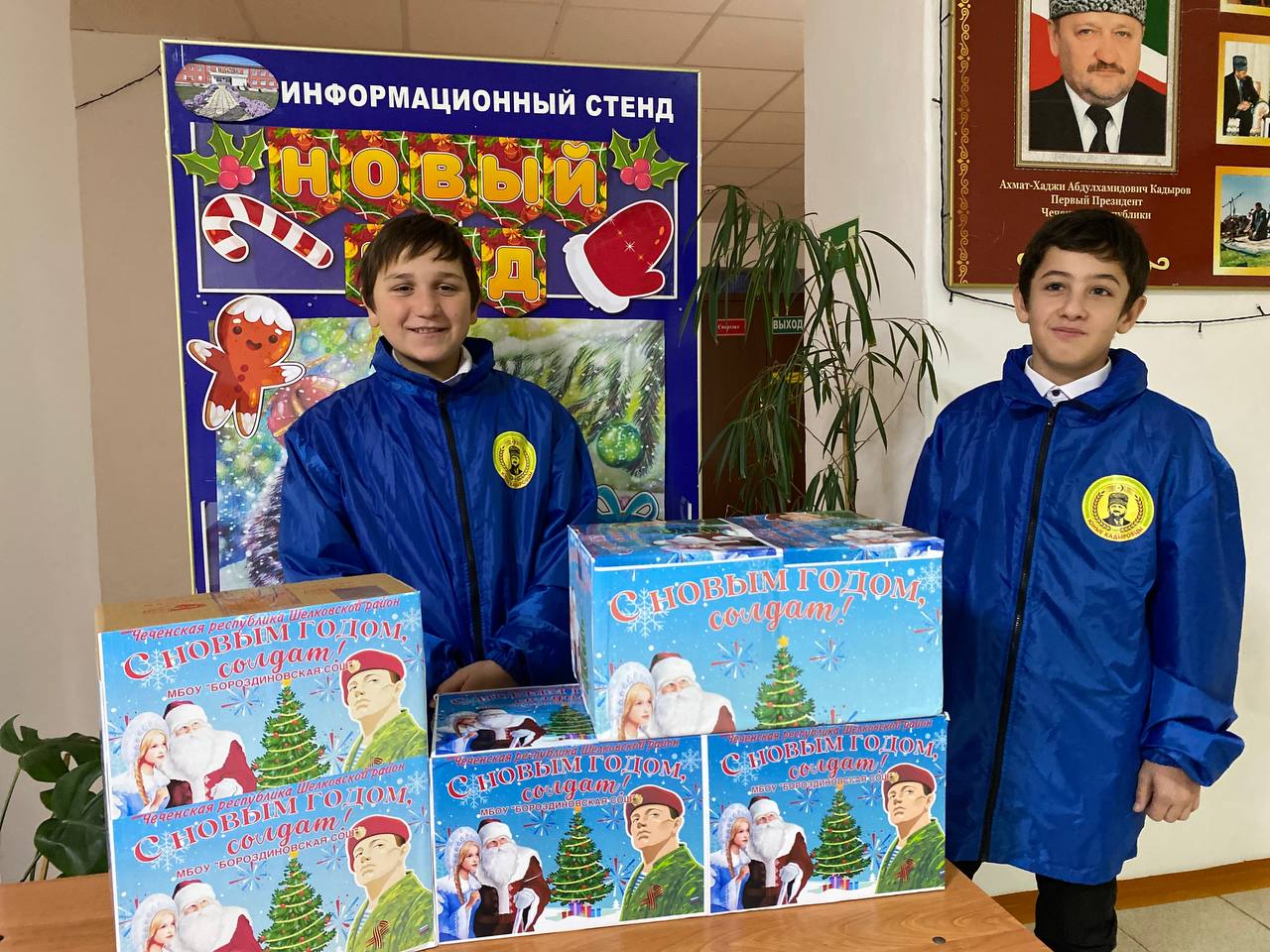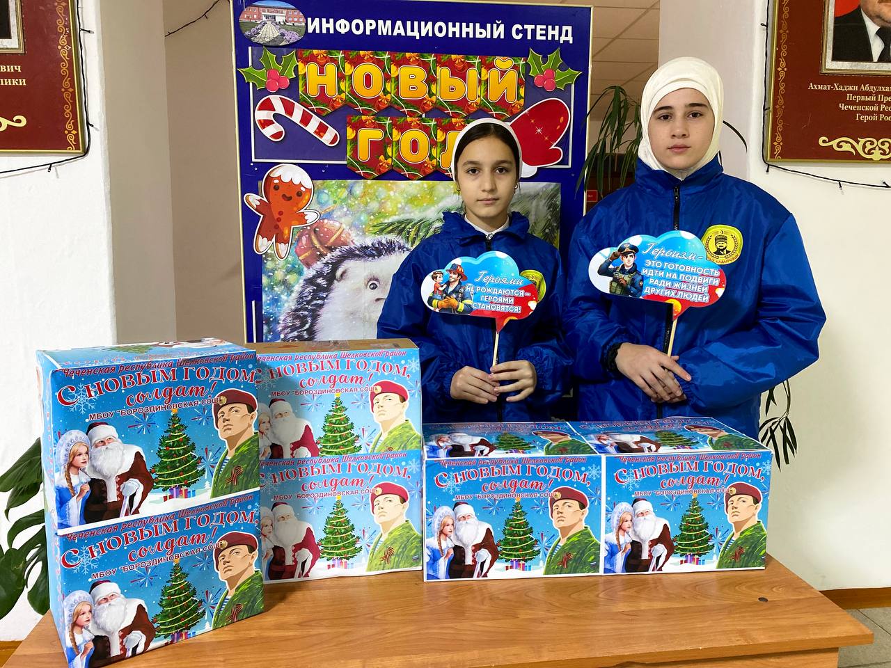 Коллектив МБОУ «Бороздиновская СОШ», активисты ЕДЮО «Юные Кадыровцы» и Юнармейцев, учащиеся вместе с родителями присоединились к Акции «Посылка Солдату», чтобы поздравить тех, кто находится сейчас в зоне проведения специальной военной операции с наступающим праздником.
