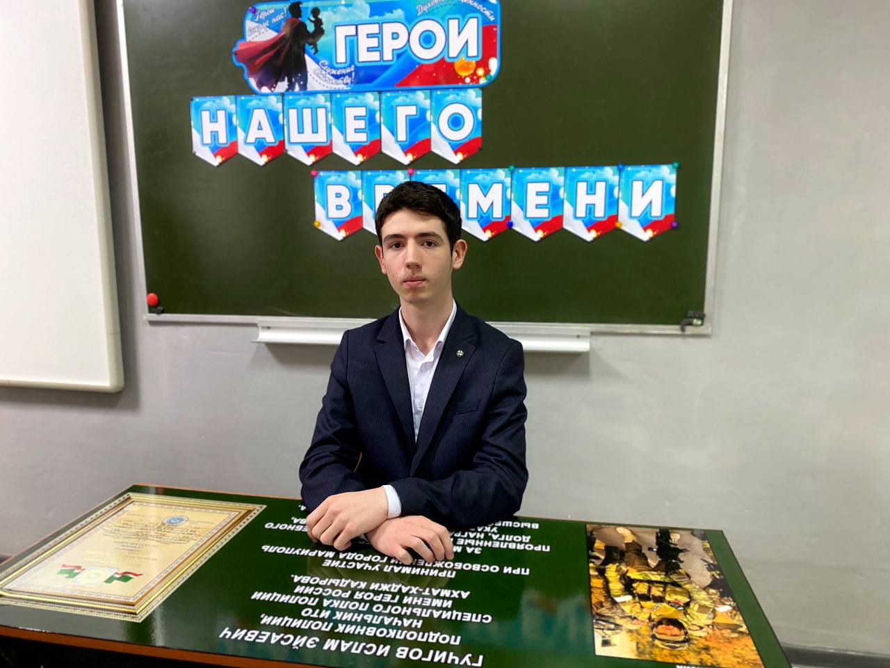 📌За "Партой Героя" будут сидеть лучшие из лучших учеников. Почетное право первым сесть за «Парту Героя» предоставлено ученику 11 класса Мунаеву Исламу Романовичу.