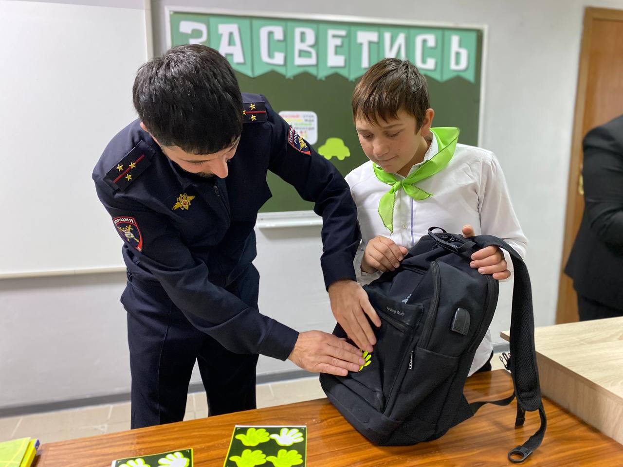 13.12.2023В преддверии зимних школьных каникул инспектором по пропаганде безопасности дорожного движения ОГИБДД ОМВД России по Шелковскому району старшим лейтенантом полиции Солтаевым Шамханом Шахрудиевичем, проведена акция «Засветись!» вместе с отрядом ЮИД «Светофорик» МБОУ «Бороздиновская СОШ».