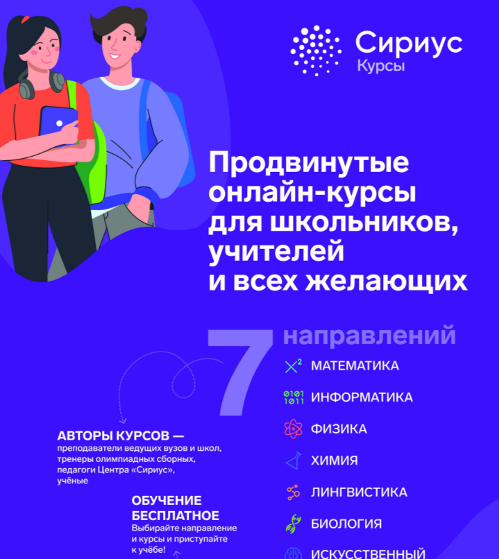 Команда авторов и методистов Сириус.Курсов продолжает формировать полную линейку курсов по естественно-научным предметам с 7 по 11 класс. Все курсы разрабатываются в единой концепции, проходить их можно в удобном темпе, выстраивая собственную образовательную траекторию.