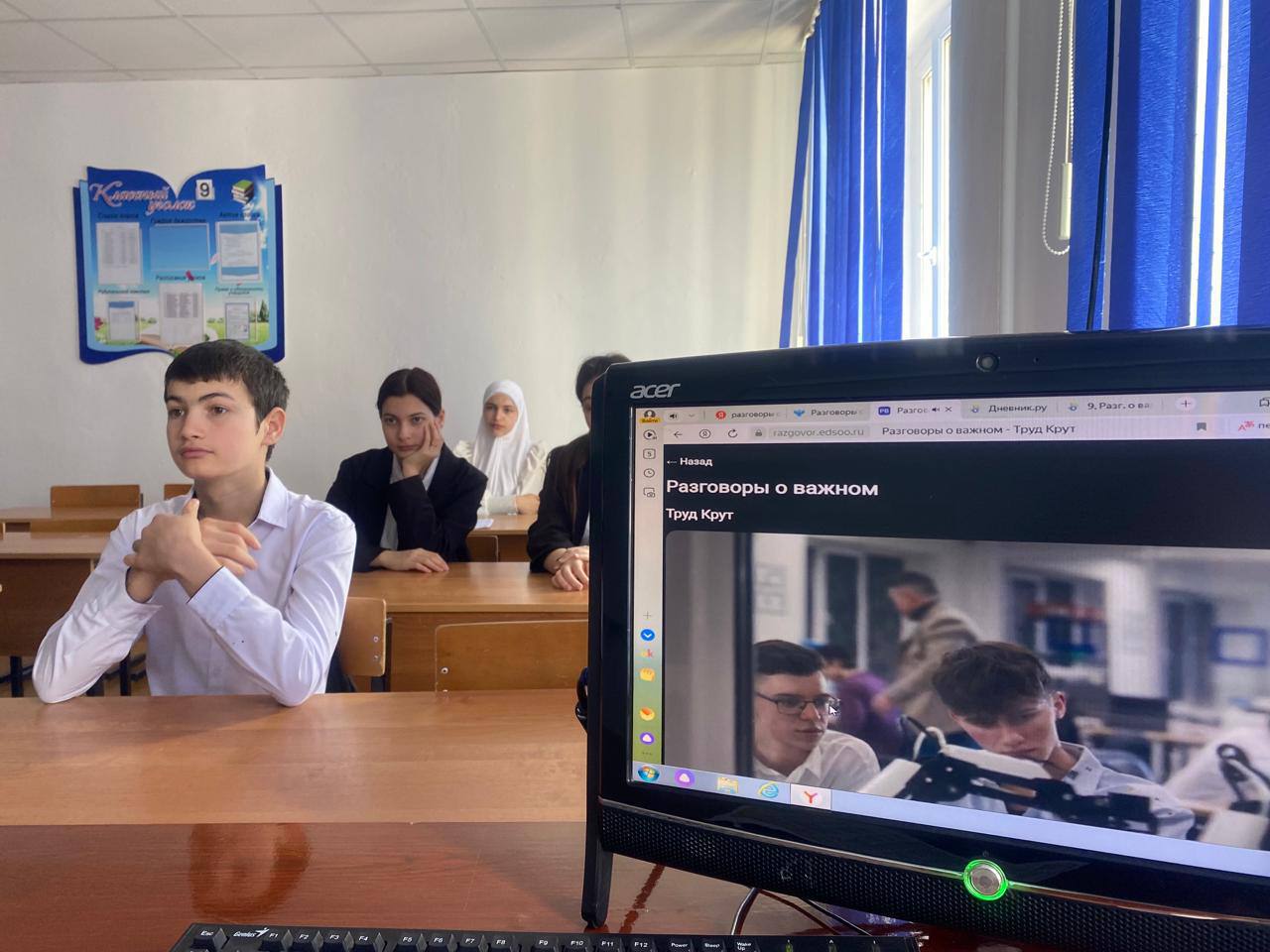 С младшими школьниками педагоги обсудили иллюстрации, побеседовали о значении слов «труд», «профессия». Интерактивные задания, позволили раскрыть основные смыслы занятия, дети узнали о шести профессиональных направлениях работы Российских Студенческих Отрядов. Внимание старшеклассников было направлено на то, что культура труда каждого человека – это не только его знание о мире профессий, но и осознанное вовлечение в социально-познавательную деятельность, позитивное отношение к раннему получению трудового опыта, сотрудничество в коллективе, понимание своего вклада в общий результат.Труд-это возможность проявить свои таланты, помочь другим и внести свой вклад в общее благополучие. Давайте вместе ценить труд и стремиться к профессиональному и личностному росту!