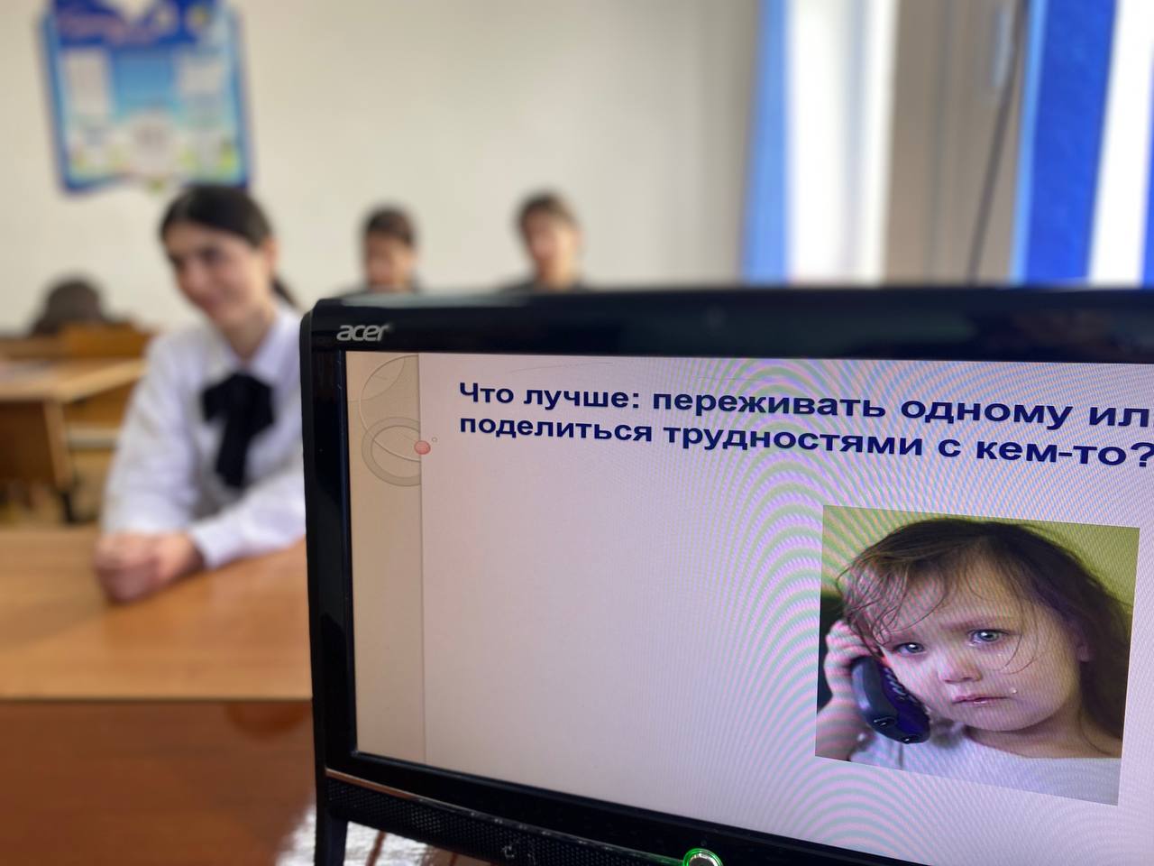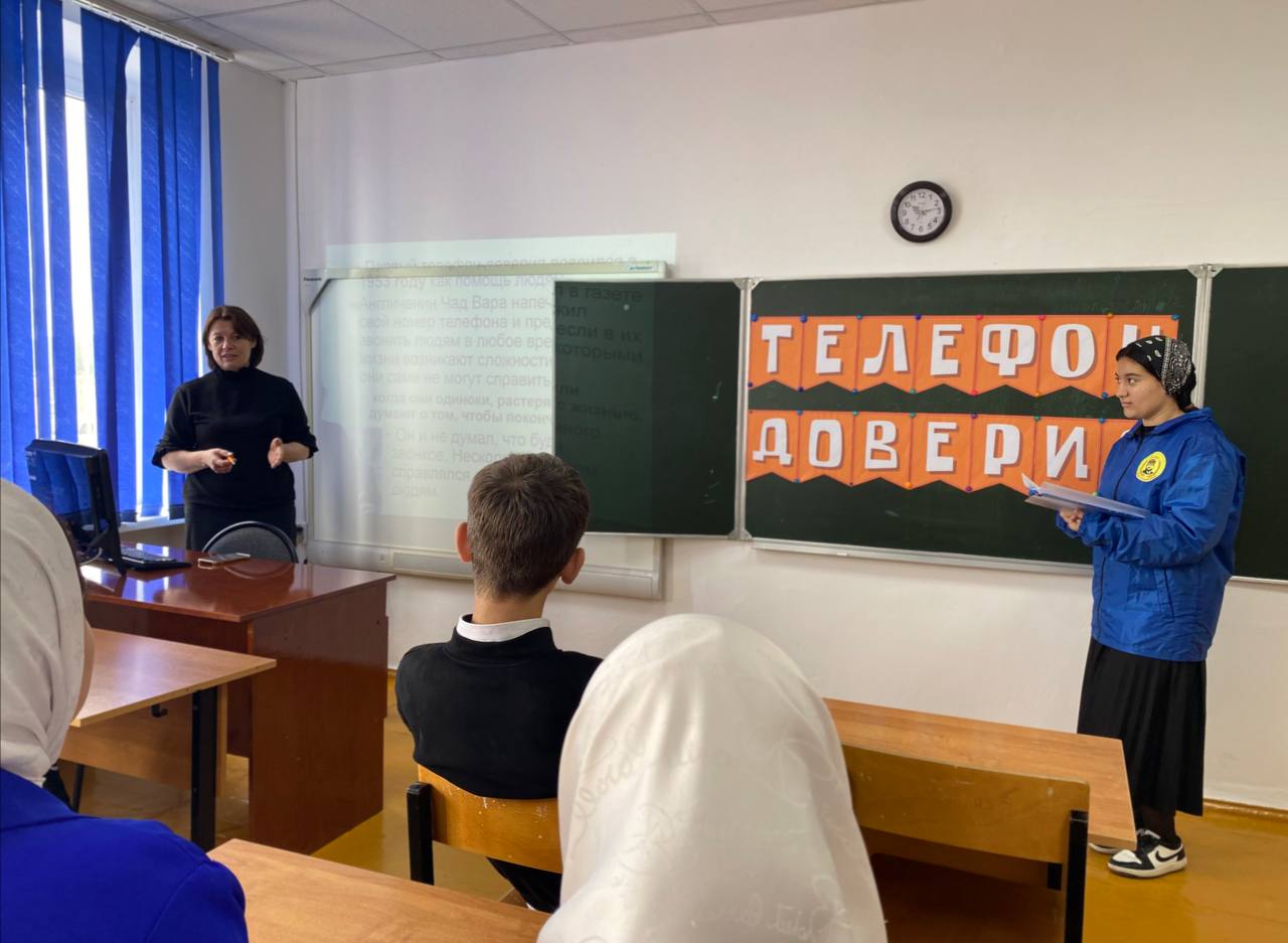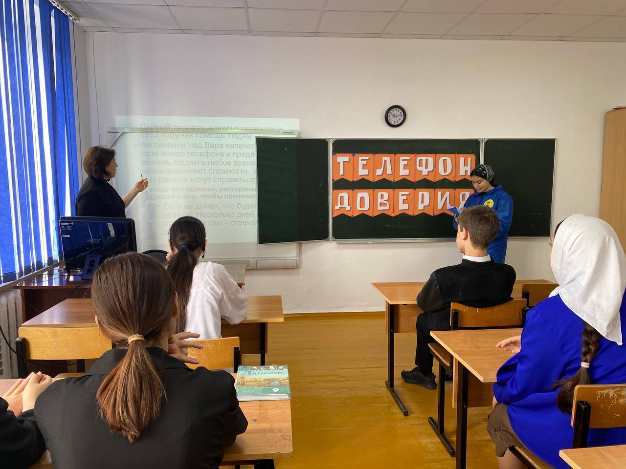 Важным каналом оказания помощи детям , оказавшимся в трудной жизненной ситуации, является Телефон доверия.Классным руководителем 9 класса Ивахненко М.Ю. совместно с активисткой ЕДЮО «Юные Кадыровы» Хангериевой Я. проведен классный час, посвященный Дню детского телефона доверия. Учащиеся узнали историю возникновения телефонной службы доверия. Обсудили вопросы, с которыми можно обратиться к консультанту телефона доверия.