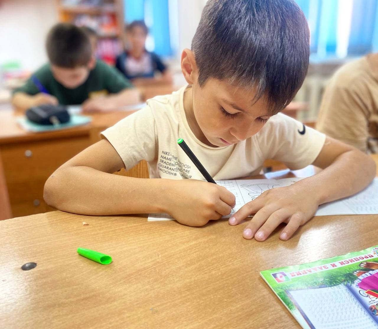 В нашей школе продолжает работу летняя тематическая площадка «Ступеньки в школу» для будущих первоклассников. На занятиях ребята познакомились с буквами алфавита. Солнышко, хорошее настроение, веселые друзья и спортивные игры заряжают ребят энергией