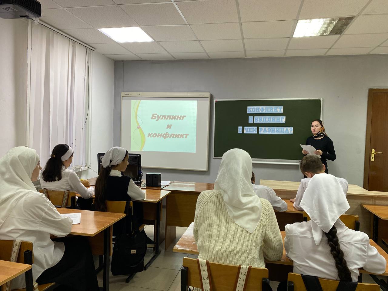 01.11.20247 ноября - Всемирный день против буллинга — это важная дата, которая позволяет нам обратить внимание на проблемы насилия и травли в учебных заведениях и обществе в целом. В этот день мы призываем всех к поддержке, защите и помощи тем, кто столкнулся с буллингом. Ученики 7 класса МБОУ «Бороздиновская СОШ» разобрались с терминами и ситуациями в межличностных отношениях.«Конфликт и буллинг. В чем разница?»под таким названием прошла беседа с детьми под руководством Адуевой Хавой Адамовной школьного педагога-психолога.