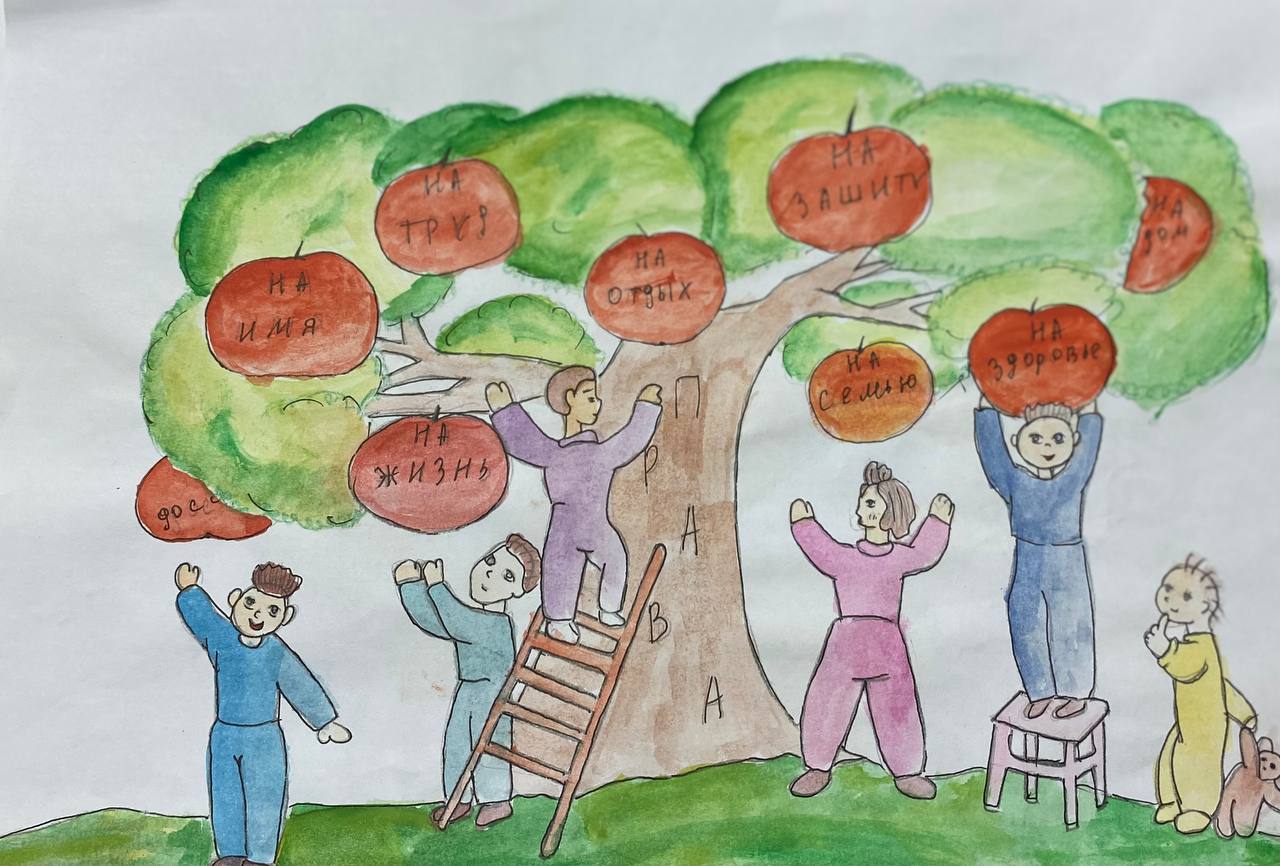 Ведь главной целью проведения данного конкурса и являлось распространение среди школьников знаний в области прав человека.Ребята изобразили на рисунках свои права на образование, на семью, на медицинское обслуживание и т.д.Ребёнок - это маленький человек, у которого тоже есть свои права и свои обязанности.