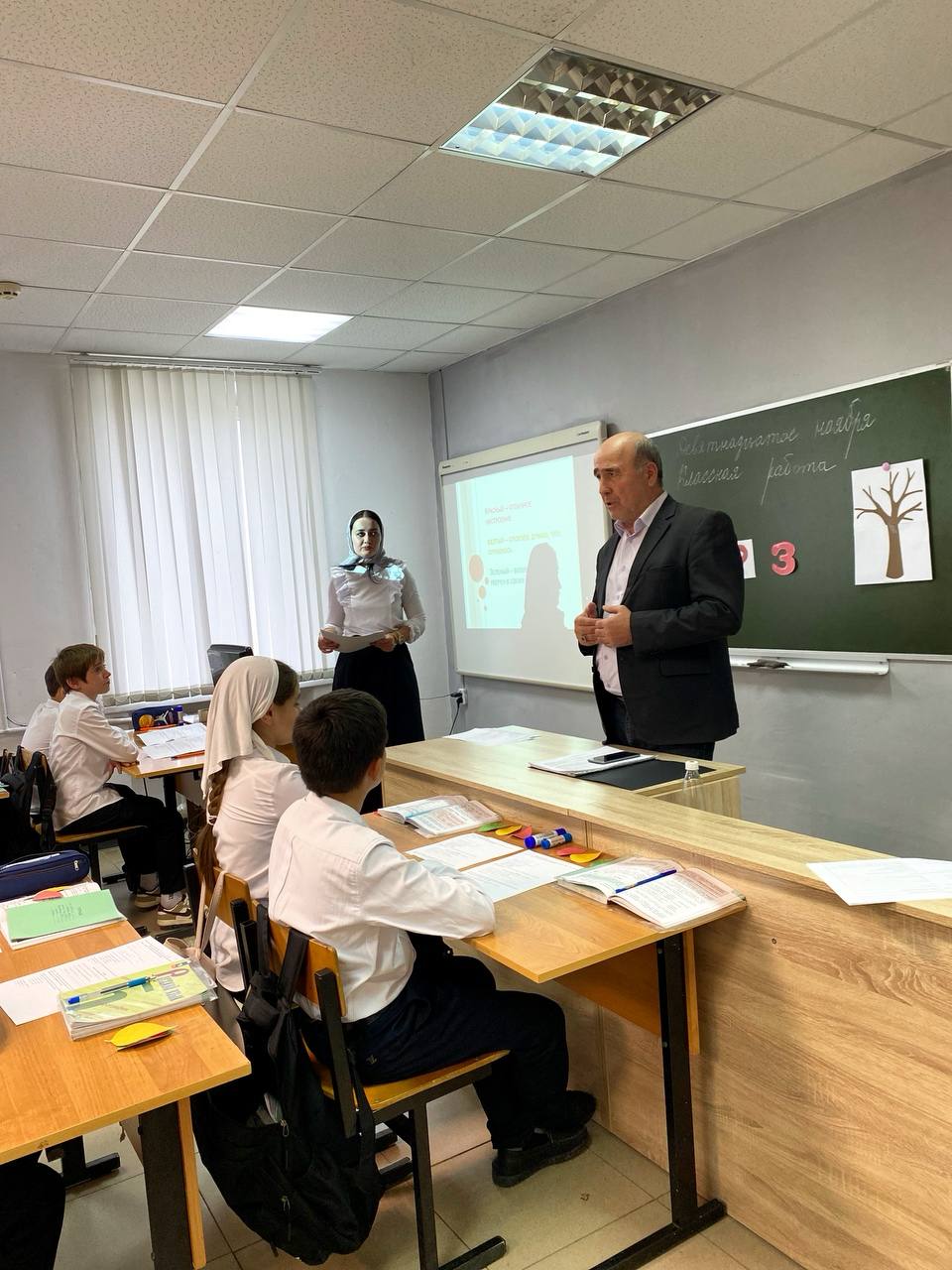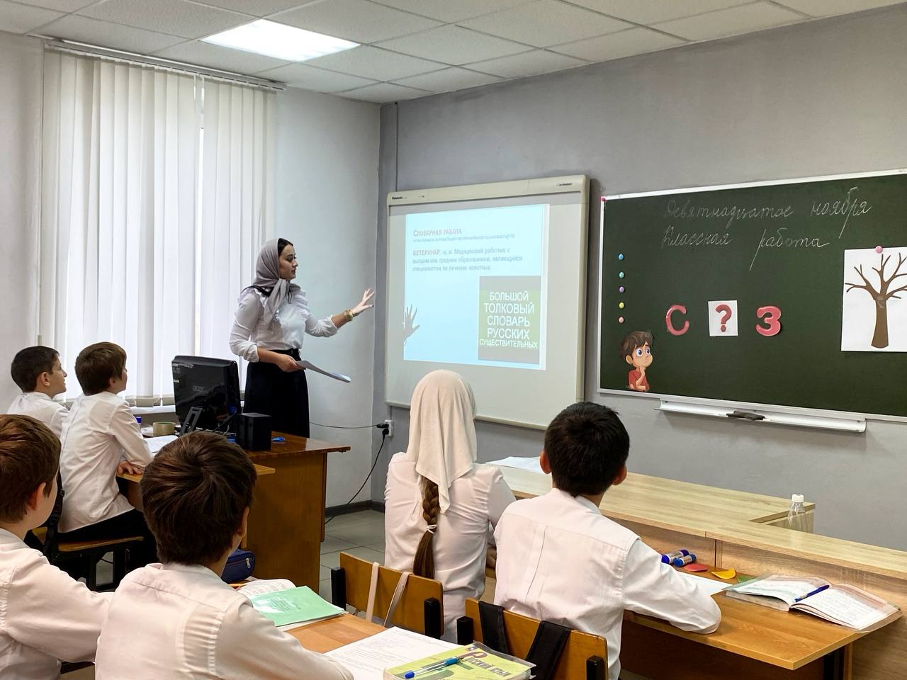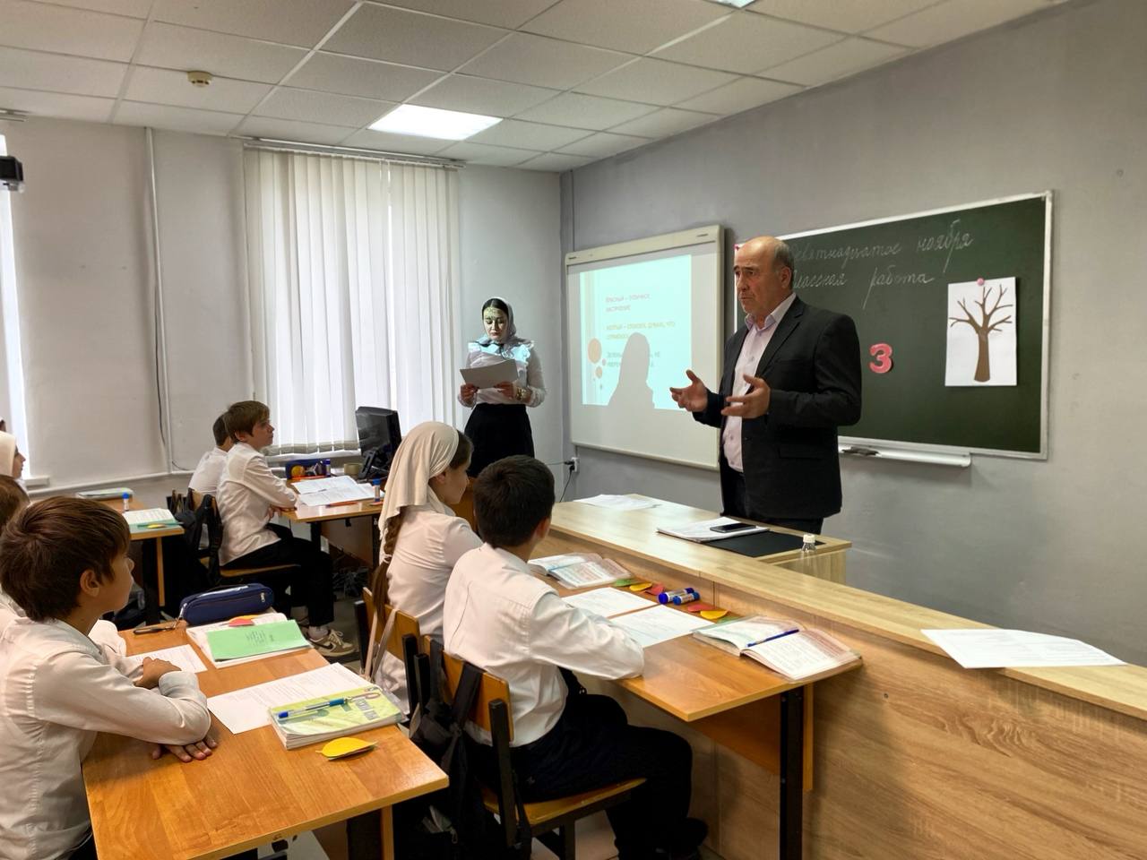 21.11.2024В рамках реализации проекта «Уроки на сцене» 19 ноября на базе МБОУ «Бороздиновская СОШ» учителем русского языка и литературы Мунаевой Р.Р. проведен показательный урок в 5 классе «Правописание приставок на з(-с)»На уроке присутствовали 30 педагогов (учителя русского языка и литературы) Шелковского муниципального района.