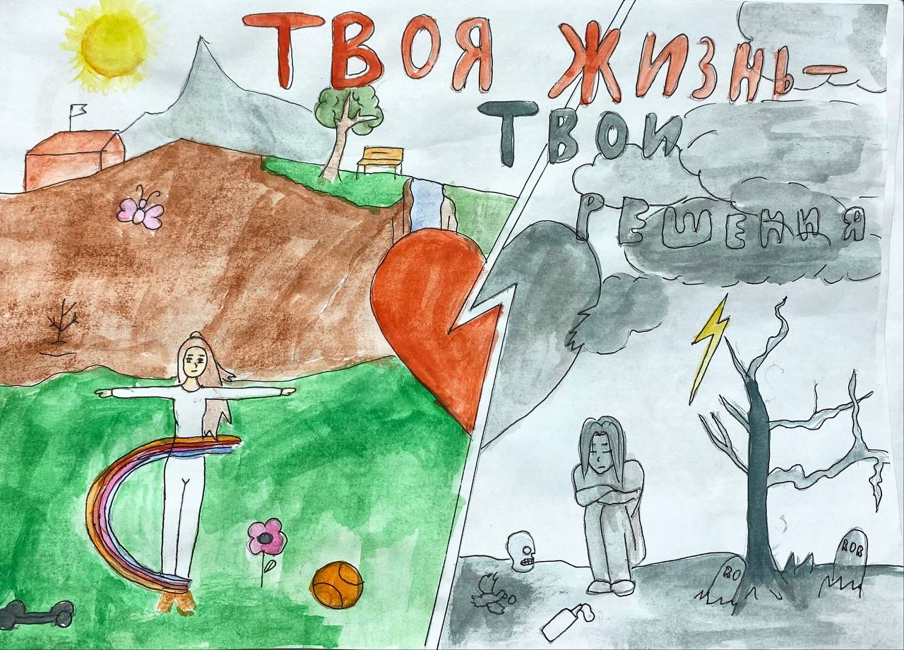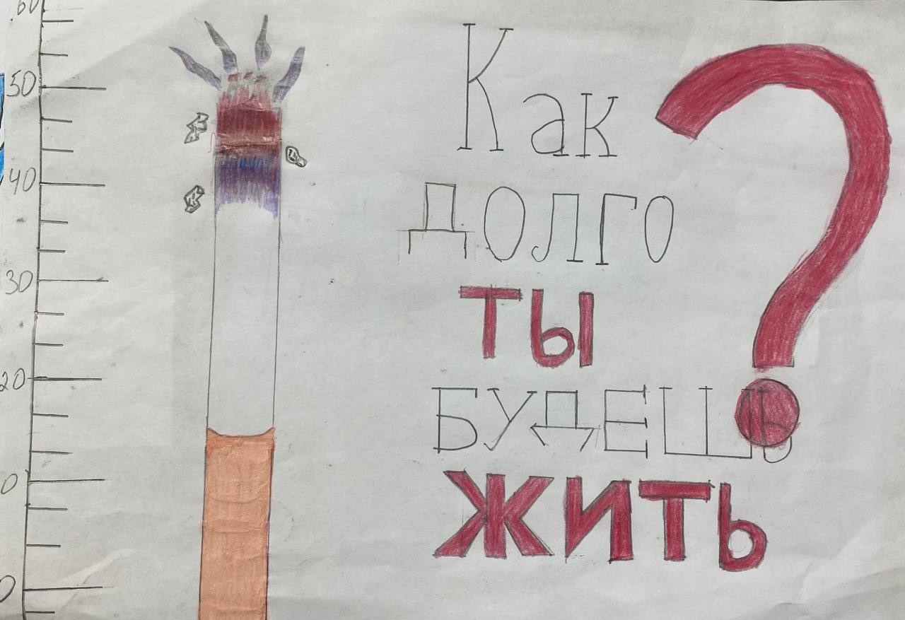 Учителем ИЗО Заурбековой С.Ф. проведен конкурс рисунков «Не прокури свое здоровье!». Участвуя в конкурсе, дети посредством рисунков показали негативное влияние пагубных привычек на личность человека
