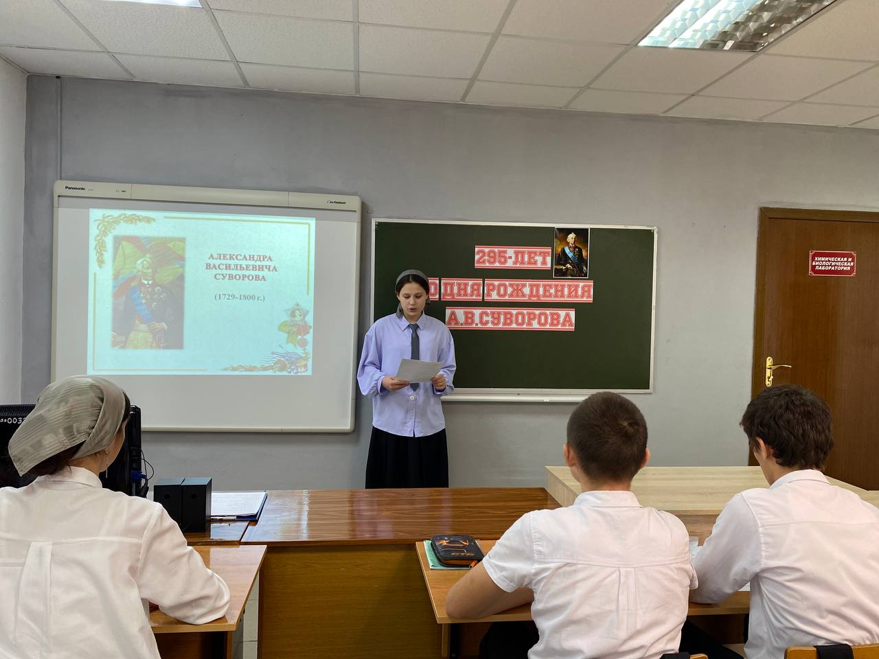 26.11.2024Урок мужества, посвященный 295-летию со дня рождения А.В. Суворова! В честь юбилейной даты великого русского полководца, настоящего патриота своей Родины, учителем истории Шапиевой О.М. был проведен урок мужества, посвященный 295-летию со дня рождения А.В. Суворова.