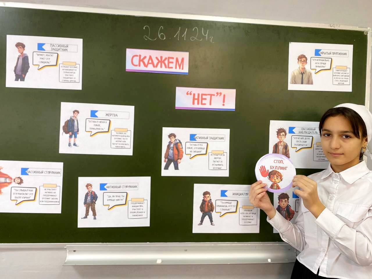 28.11.2024Социальным педагогом Шапиевой О.М. проведен информационный час «Буллинг - справимся вместе».Целью данного мероприятия было обучение навыкам совладания с конфликтными ситуациями, укрепление дружеских взаимоотношений, стимулирование заинтересованности в поисках путей выхода из конфликтных ситуаций.