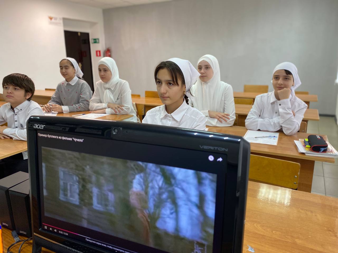Она ознакомила учащихся с понятием «буллинг», с типичными особенностями детей, которые становятся преследователями и жертвами преследования; постарались выработать навыки поведения при столкновении с преследованием.Также обучающиеся просмотрели эпизоды мультфильма «Гадкий утенок» и кинофильма «Чучело» и поразмышляли над сюжетом и поступками героев.После просмотра обсуждали вопросы про буллинг: как справиться с травлей в школе? Поговорили о насилие в школе: как ребенку реагировать на буллинг.В конце мероприятие на сплочение коллектива была проведены игра «Кидай-говори» и упражнение-тренинг «Качество на букву», выполнили задания в рабочих листах. Надеюсь, что ребята сделали вывод из беседы и никогда не допустят в коллективе такого неприятного явления как буллинг и полученные на встрече знания и практический опыт помогут им в дальнейшей жизни.