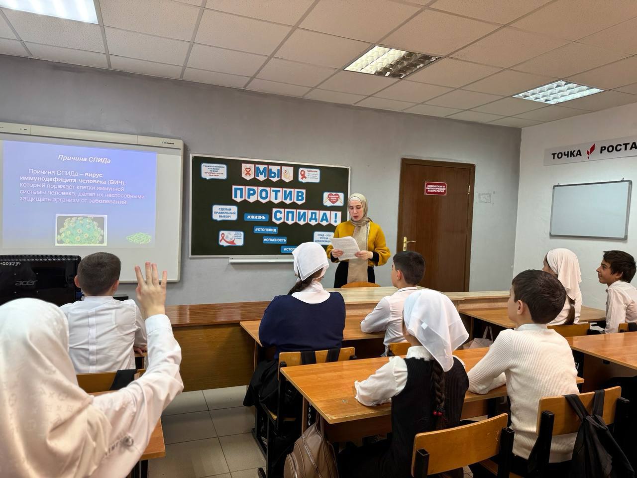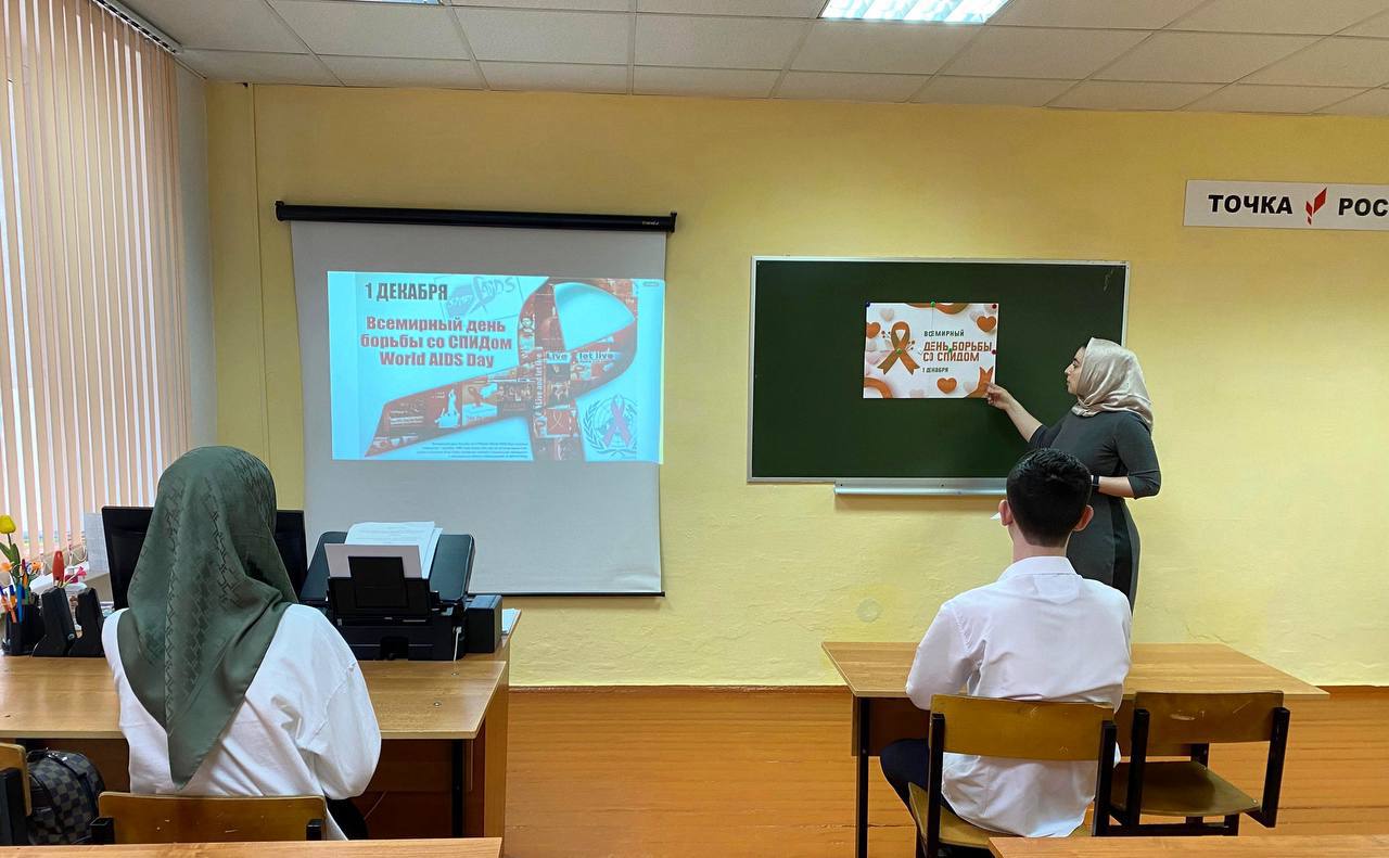 Ребятам рассказали о международном символе борьбы со СПИДом – «красной ленточки», об истории возникновения этого вируса, пути передачи ВИЧ, как протекает СПИД, как избежать заражения. В ходе мероприятия обучающиеся посмотрели социальный ролик о том, что Всемирный день борьбы со СПИДом появился для того, чтобы привлечь внимание мировой общественности и просто людей к проблеме СПИДа. А ещё просмотрели документальный фильм, узнав для себя много важной информации. СПИД - вирусная инфекция, сопровождающаяся глубокими нарушениями именной системы организма, который оказывается беззащитным перед болезнетворными микробами.Символом борьбы с опасным заболеванием является красная лента. Красная лента свёрнутая петелькой символизирует цвет крови и является Международным символом борьбы со СПИДом – символом нашего сострадания, поддержки и надежды на будущее без СПИДа. Не нужно бояться, нужно знать! Остановим СПИД, или СПИД остановит нас.#СТОПВИЧСПИД.РФ
