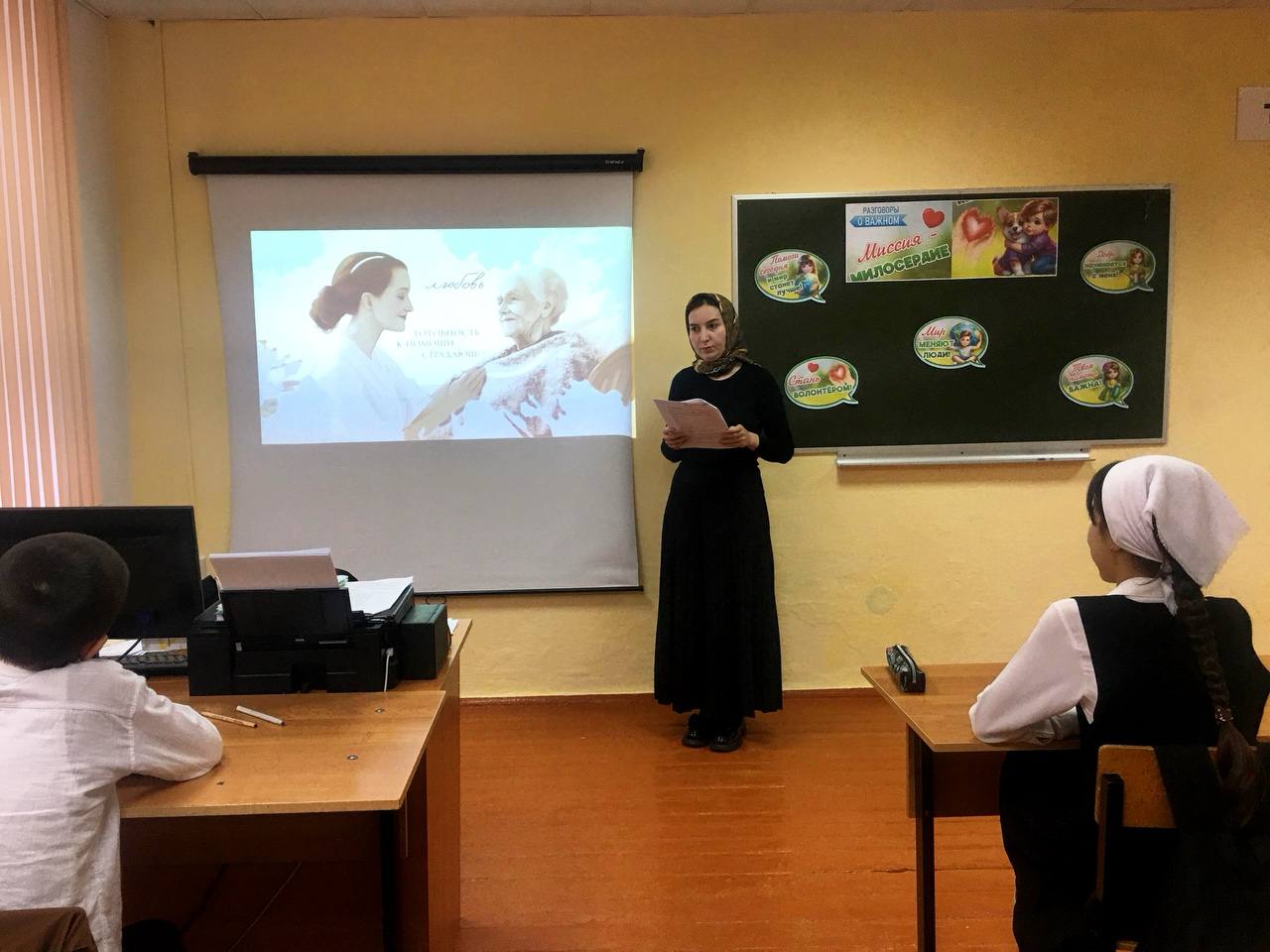 Сегодня на нашем занятии "Разговоры о важном" мы говорили о теме, которая касается самого сердца – "Миссия-милосердие", приуроченной ко Дню волонтёра. Мы обсудили, что доброта и отзывчивость – это отличительные черты нашего народа. Большинство из нас в первую очередь учится добрым делам у людей, которые для нас являются примером. Мы вспомнили стихотворение С. Погорельского «Попробуй-ка сам!», которое вдохновило нас разговаривать о заботе и внимании. Часто тех, кто делает добро, сравнивают с добрыми волшебниками – ведь их поступки исходят не из обязанности, а из искреннего желания помочь и не требуют благодарности. Поговорили о том, легко ли научиться помогать другим? Наш народ всегда славился традицией любви к ближнему и взаимопомощи. Сегодня эти традиции продолжают жить и развиваться в России. Существует множество благотворительных фондов и волонтёрских организаций, таких как фонд помощи пожилым людям и инвалидам "Старость в радость". Мы посмотрели видеообращение от его руководителя, Елизаветы Олескиной, о том, как важно поддерживать тех, кто нуждается в заботе. В конце занятия мы обсудили, кто такие волонтёры и что значит волонтёрское движение. Волонтёр – это тот, кто по зову сердца помогает другим. Может быть, вы уже спрашивали себя: "А могу ли я, даже будучи ещё ребёнком, делать добрые дела?" Ответ – конечно, да! Существует множество направлений волонтёрства: помощь животным, экологическое волонтёрство, поддержка пожилых людей и многое другое. Узнать о возможностях можно на платформе Добро.рф, где зарегистрировано более 7 миллионов волонтёров. Главное помнить, что ваше доброе сердце всегда найдёт способ помочь ближнему. Давайте учиться творить добро вместе!