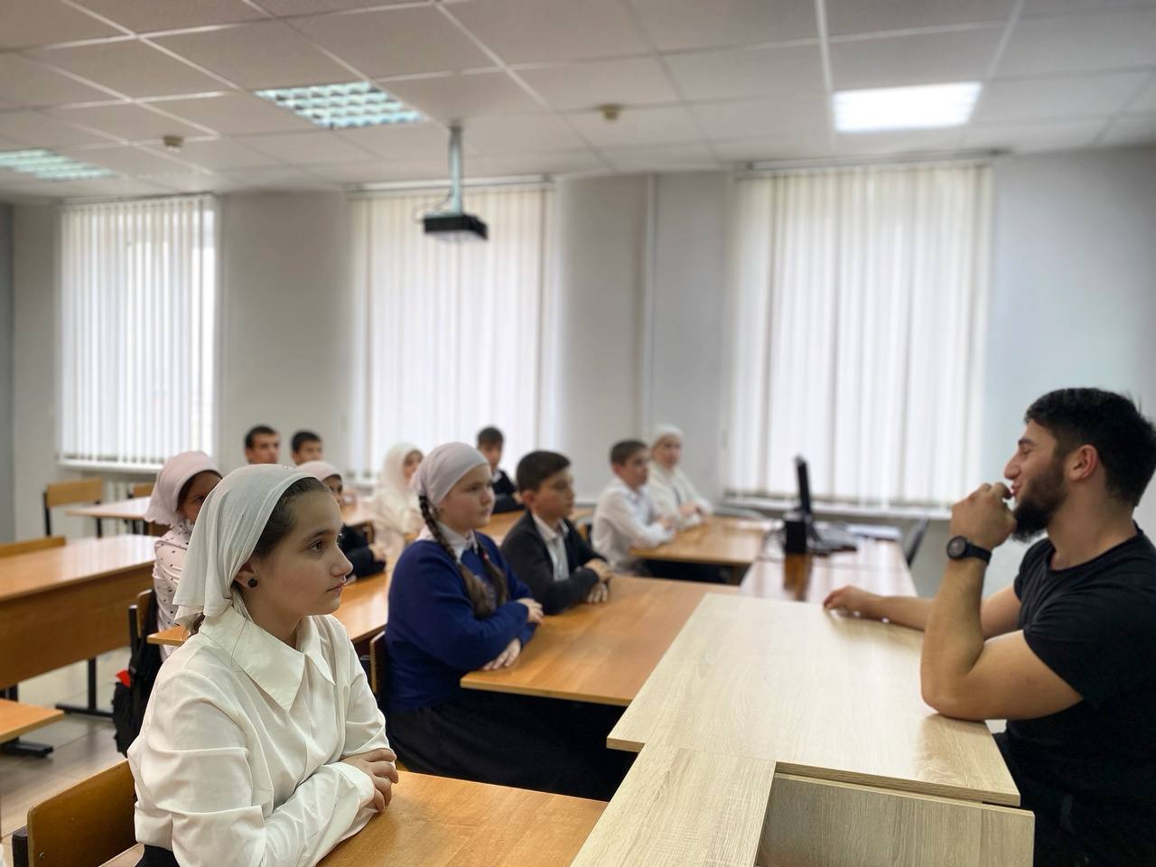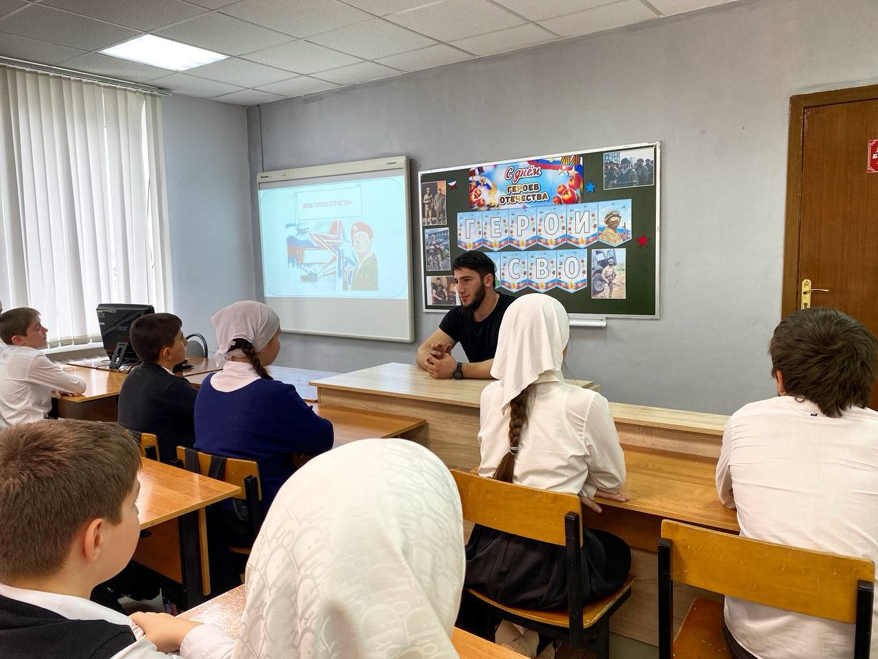 На эту встречу мы пригласили участника специальной военной операции Багаева Умара, выпускника нашей школы. Сейчас он находится в краткосрочном отпуске и согласился прийти и поделится с ребятами личными воспоминаниями и опытом. Умар рассказал почему принял решение служить Родине и какие испытания ему пришлось преодолеть. Рассказ вызвал у учеников большой интерес. Ребята задавали гостю много вопросов — о быте в условиях спецоперации, вооружении наших солдат, ведении боевых действий. На них боец отвечал предельно честно и открыто. Также поинтересовались, помогают ли письма школьников, отправленные участникам спецоперации. Участник СВО поблагодарил ребят и сказал, что детские открытки и письма они с волнением читают, что моральная поддержка родных и всего общества очень важна для солдат. Это мероприятие стало значимым событием для обучающихся 5 класса, предоставив возможность узнать о военных буднях и трудностях, с которыми сталкиваются военнослужащие.В конце встречи школьники сказали огромное «Спасибо» и пожелали Умару скорейшего возвращения с победой домой. Багаеву Умару было очень приятно оказаться в стенах родной школы, встретиться с любимыми учителями и ребятами.Такие встречи способствуют воспитанию чувства гордости за свою страну. На конкретном примере обучающиеся увидели, что настоящие герои живут рядом, что мужество, храбрость, любовь к Родине — это качества настоящего человека.