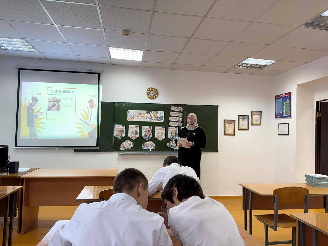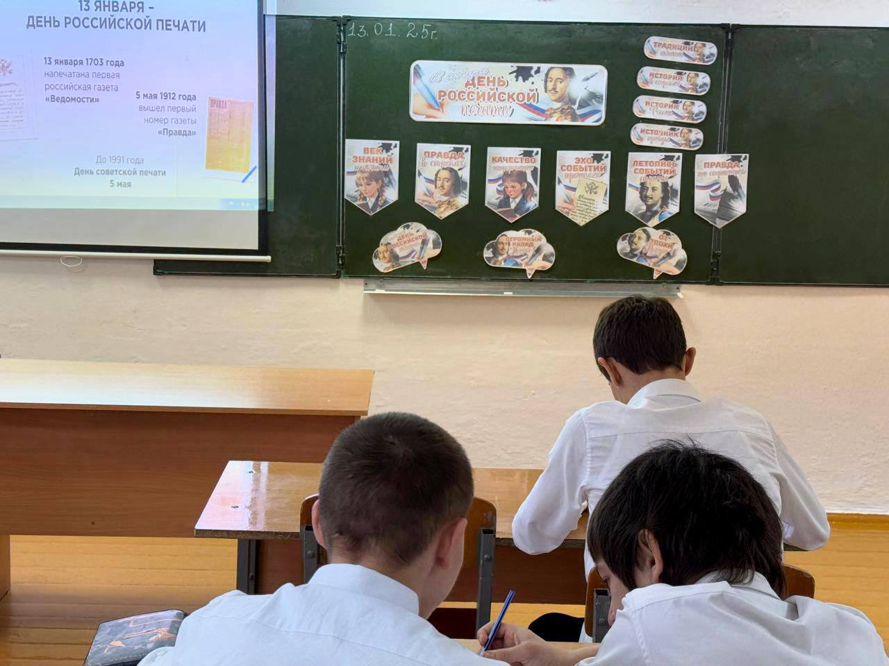 Тема внеурочного занятия стала: «День Российской печати». Внеурочное занятие «Разговоры о важном», посвященное Дню российской печати, стало увлекательным и познавательным событием для всех участников. Мы начали с просмотра видеосюжета, который погрузил нас в истоки этого значимого праздника. История российской печати оказалась насыщенной и впечатляющей, что вдохновило обучающихся на дальнейшее обсуждение.Следующим этапом занятия стало видеоинтервью с Павлом Николаевичем Гусевым, главным редактором газеты «Московский комсомолец». Слушая его, мы получили уникальную возможность заглянуть в закулисье одной из старейших российских газет, понять, с какими вызовами сталкивается современная журналистика, и как профессионалы слова ищут и находят актуальные темы для своих читателей.После теоретической части ученики приняли участие в интерактивном задании «Профессии СМИ», в ходе которого постарались сопоставить различные профессии с их описаниями, что позволило лучше понять разнообразие и специфику работ в мире медиа.Сегодняшнее внеурочное занятие показало, насколько важна роль печати в современном обществе и сколько усилий требуется для того, чтобы каждое издание было интересным и полезным для читателя. День российской печати стал не только праздником, но и днем глубокого понимания профессии журналиста и всей редакционной команды.