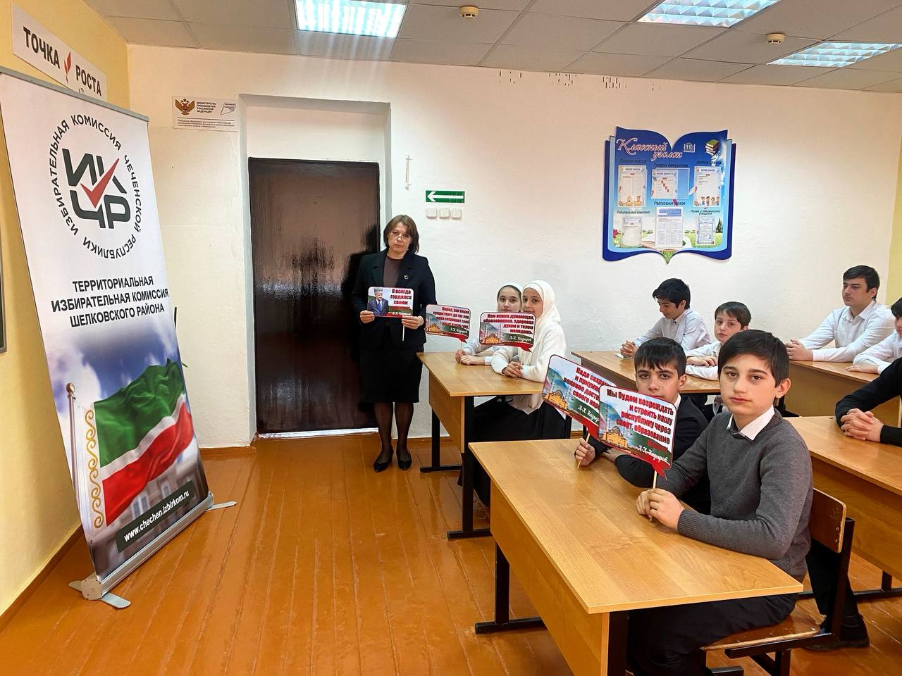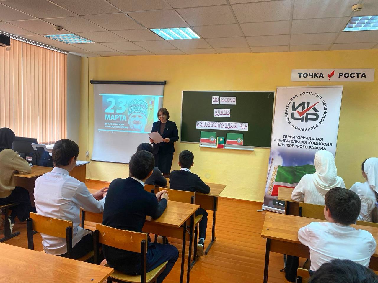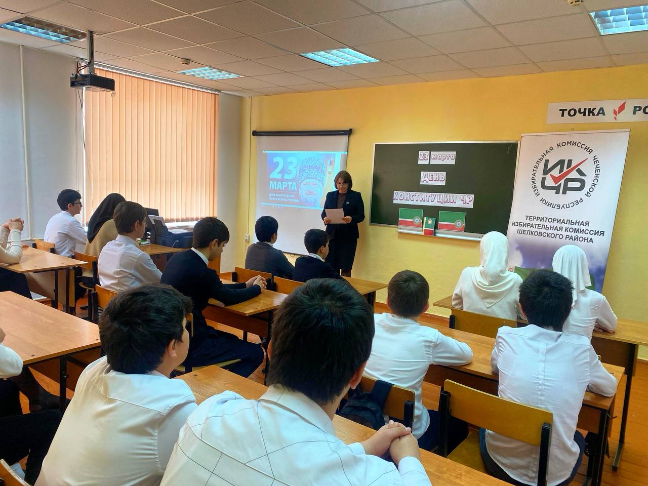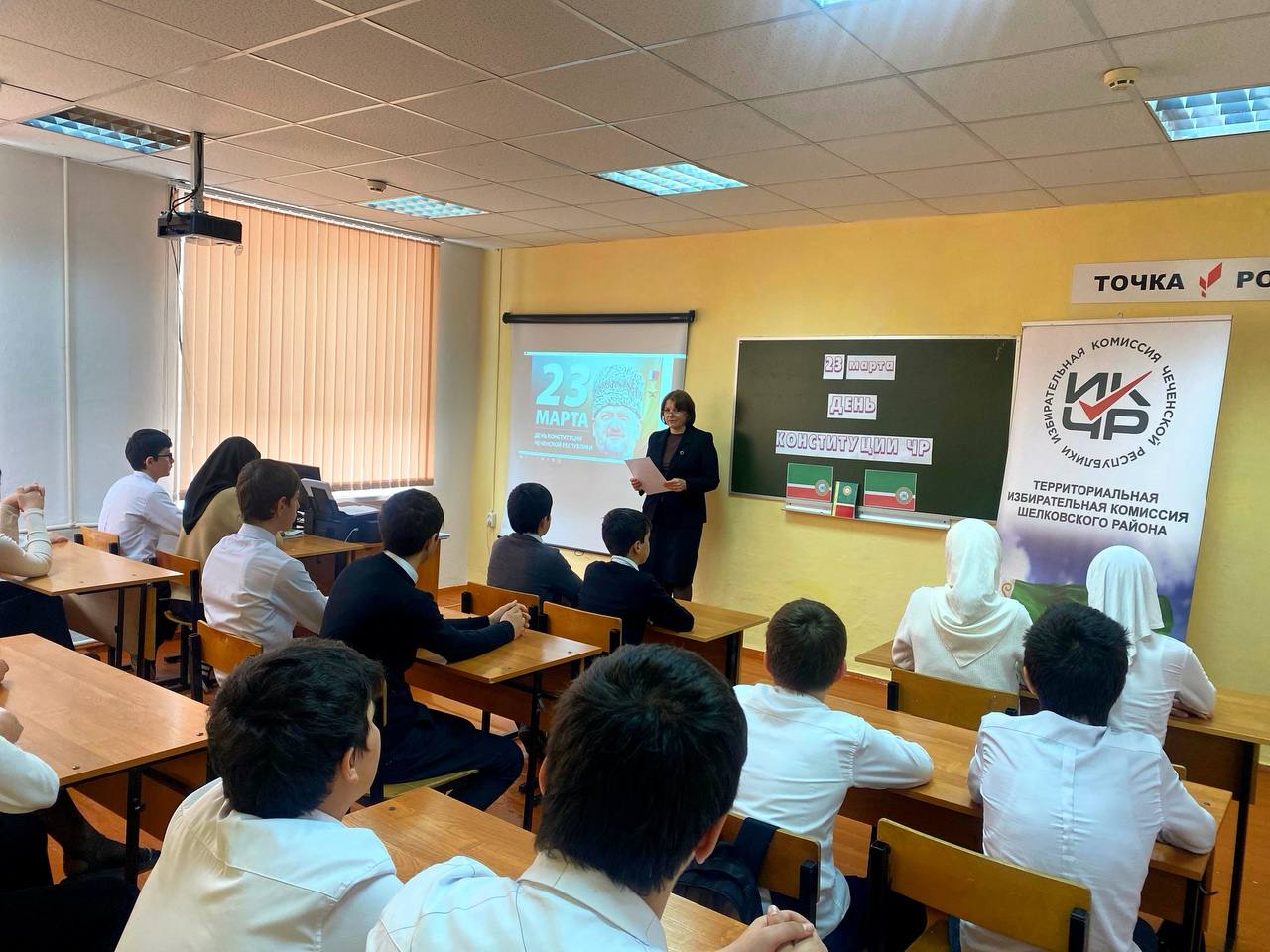 21.03.2025Председателем УИК 347 Ивахненко М.Ю. была проведена беседа с учащимися МБОУ «Бороздиновская СОШ» на тему «23 марта — День Конституции Чеченской Республики».