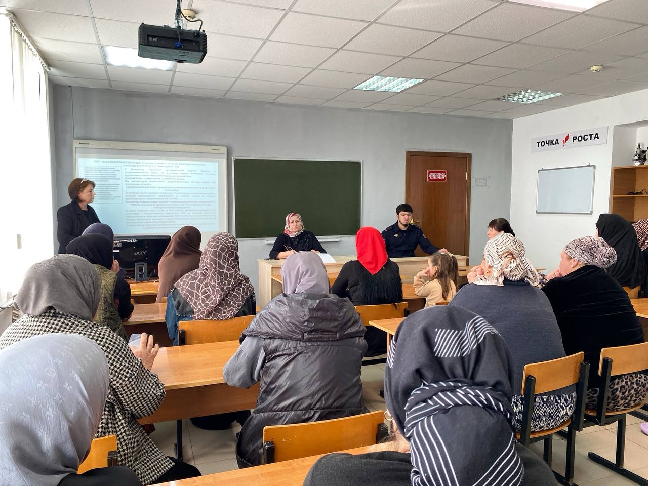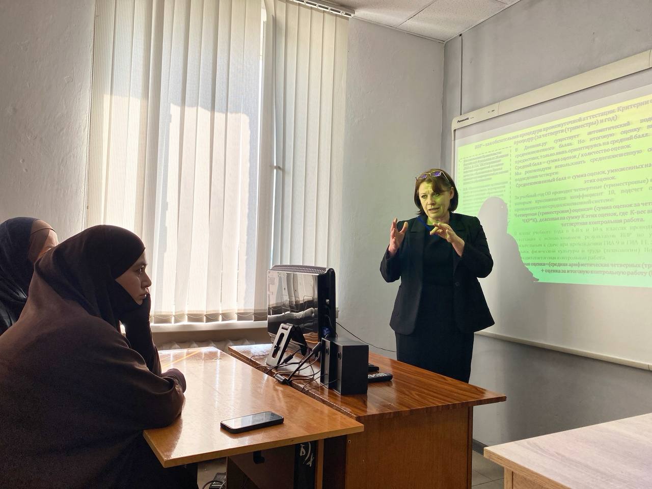 Перед родителями выступили: Магомедгаджиева А.А. - директор школы, заместитель директора по УВР Ивахненко М.Ю., инспектор ПДН Муташев Б.Ю.