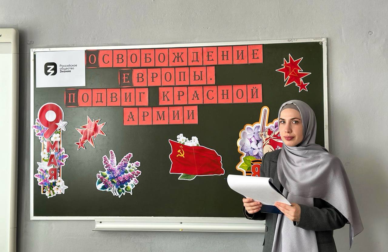 17.04.202517 апреля Шапиева О.М. лектор Российского общества «Знание», учитель истории МБОУ «Бороздиновская СОШ»выступила с лекцией Российского общества «Знание» на тему «Подвиг Красной Армии. Освобождение Европы».